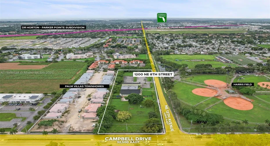 Discover an exceptional commercial opportunity in the heart of Homestead! Located on the highly visible corner of Campbell Drive and NE 12 Ave (Harris Field), this expansive 3.74-acre corner lot, zoned B-1, offers limitless potential for development. Currently functioning as a school with 13,000+ sqft, built in 2002, and 69 dedicated parking spaces, the property is ideally suited for a range of commercial uses. With a daily traffic flow of 39,300 vehicles, this prime location guarantees maximum exposure and accessibility for any business.. This is a rare opportunity to capitalize on a high-traffic, high-visibility location in one of Homestead’s busiest corridors.