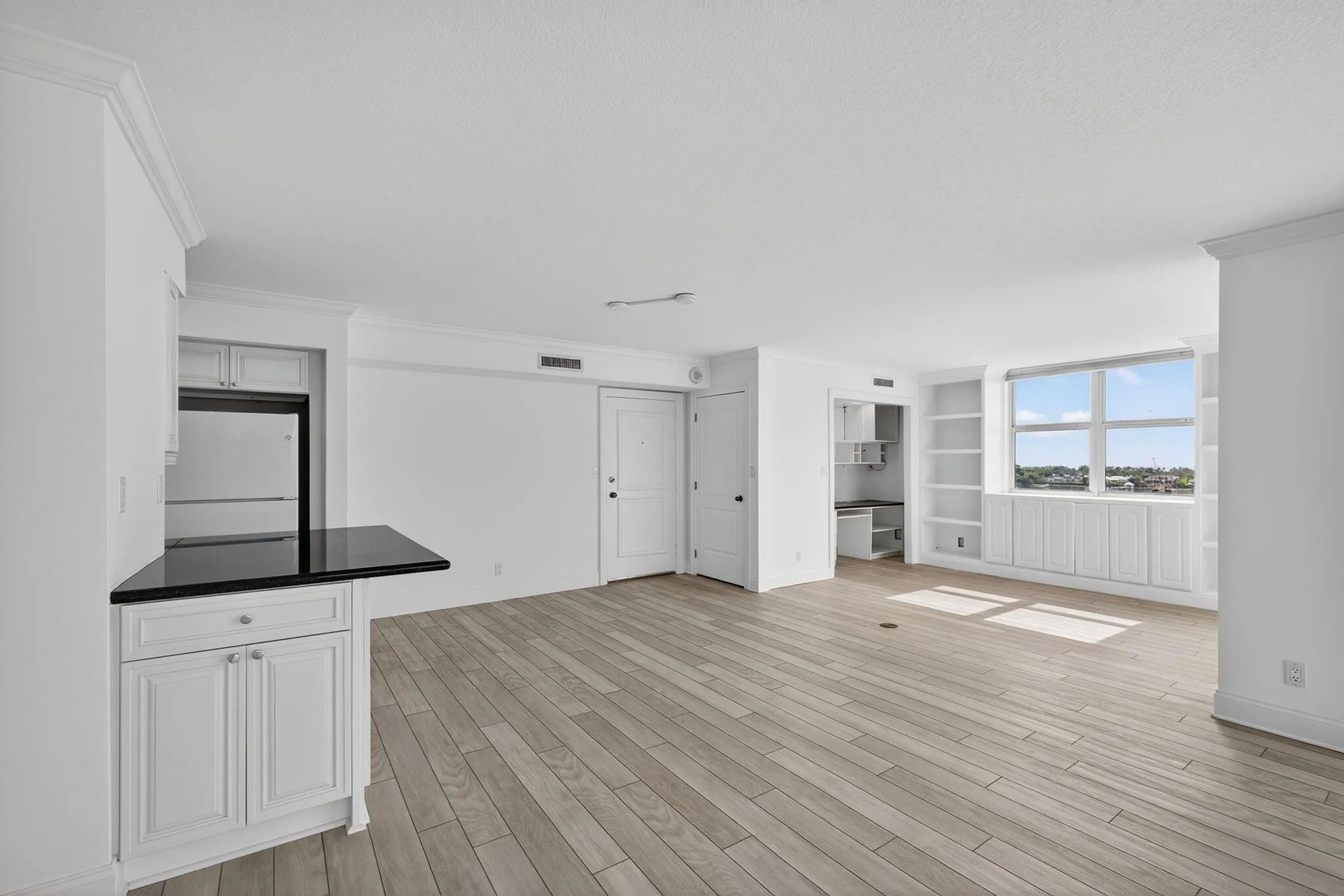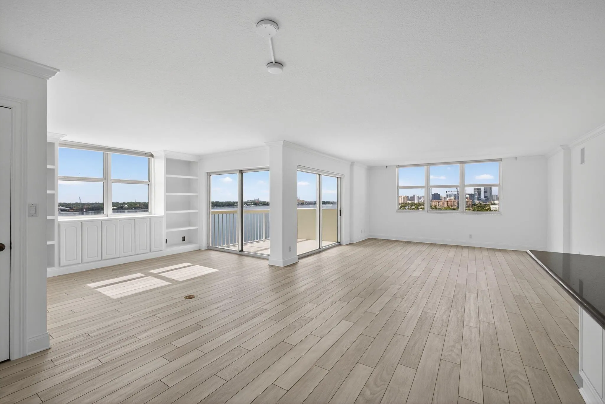 Live where the yachts glide by and the sunrises steal the show. This completely renovated 2-bedroom, 2-bath condo with a spacious den and great room offers direct Intracoastal views, as well as views of the mansions of Palm Beach and the Atlantic Ocean. Offered unfurnished for annual rental, this unit blends luxury, location, and lifestyle in one of West Palm Beach’s most vibrant neighborhoods: Northwood. Some of the features in this sleek condo include an open-concept great room with floor-to-ceiling water views, a Den for flexible living or for an office, granite countertops in the kitchen, very spacious bedrooms, and updated bathrooms. Feel secure and safe with the 24-hour doorman, gated entry, and assigned parking this beautiful condo offers. Located in Northwood, just steps from