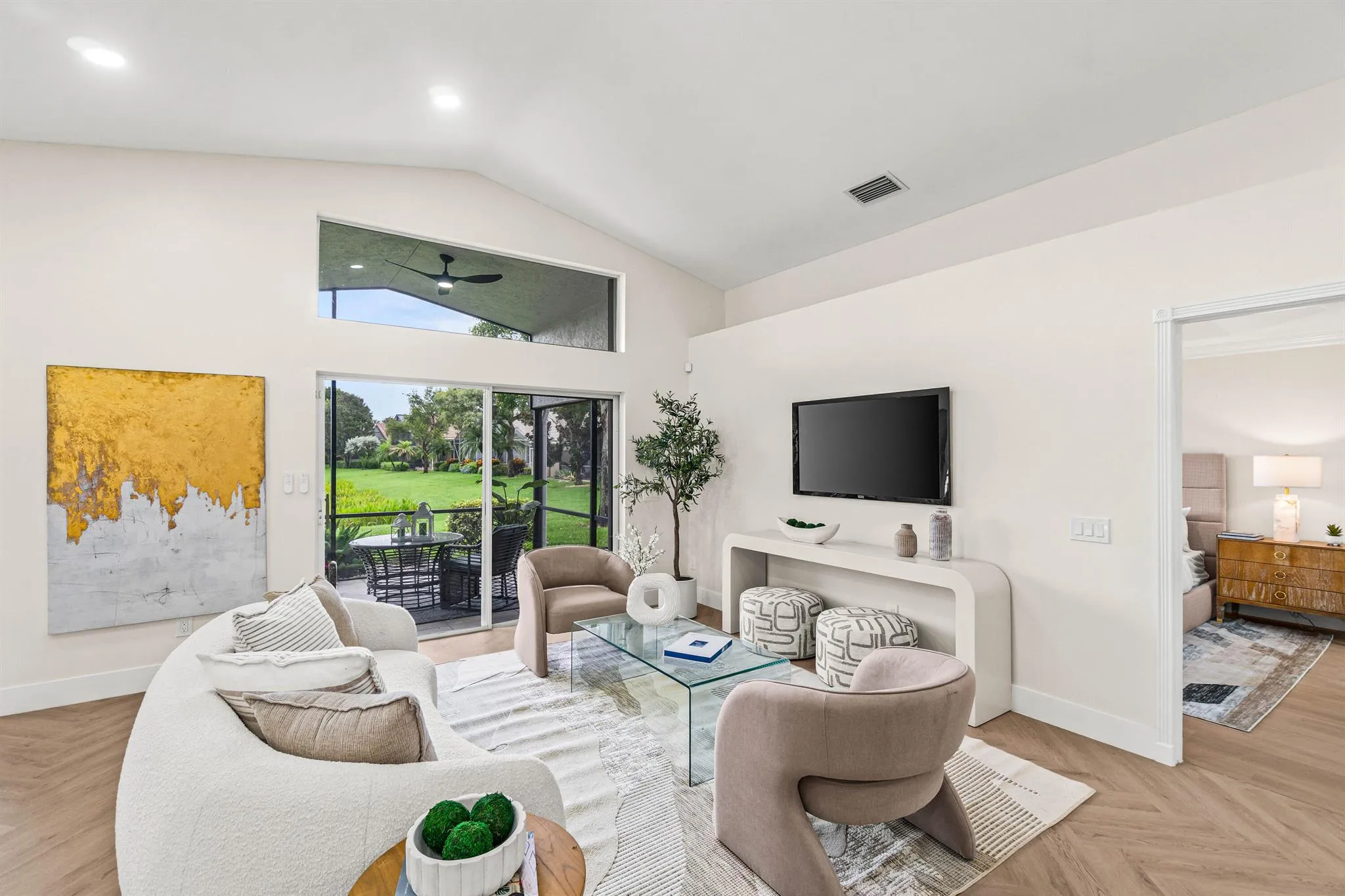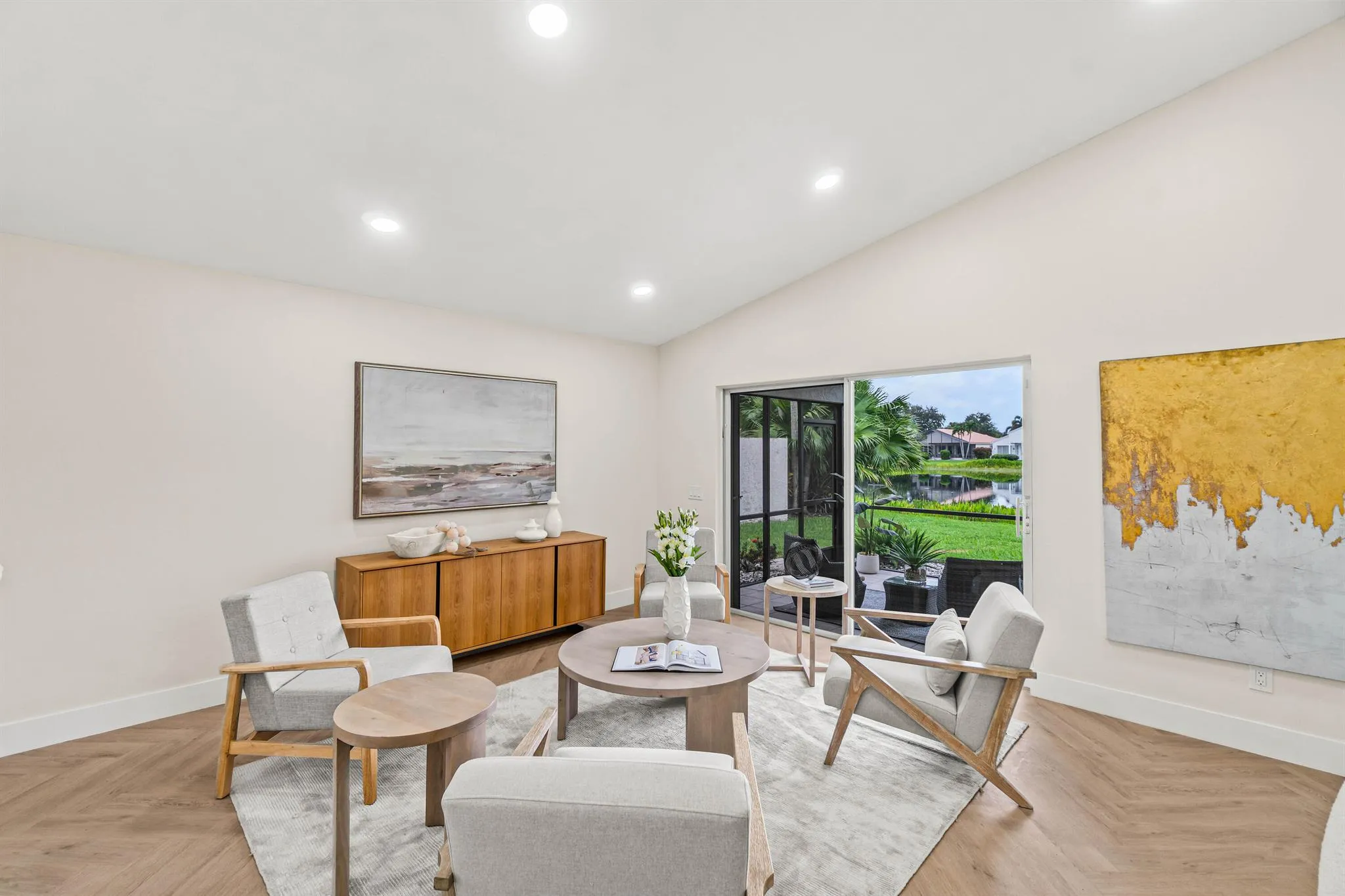 COME SEE THIS FULLY RENOVATED CORAL MODEL w/ THE WALL DOWN FOR A PERFECT OPEN CONCEPT FLOOR PLAN. BRAND NEW ROOF IS BEING INSTALLED & 2023 A/C!NEW HERRINGBONE PATTERN FLOORING, SMOOTH CEILINGS & EXTRA LED HI HATS FOR A BRIGHT MODERN FEEL. THE KITCHEN IS THE HEART OF THE HOME w/ NEW QUARTZ COUNTERTOPS FEATURING ROOM FOR 4 BAR STOOLS, 2 TONE CONTEMPORARY CABINETRY & NEW STAINLESS STEEL APPLIANCES. THE PRIMARY BEDROOM HAS BEAUTIFUL LAKE VIEWS & THE PRIMARY BATHROOM IS A SHOWSTOPPER RIGHT OFF HGTV! THE GUEST BATHROOM FEATURES MODERN DESIGNER TILE WALLS & FLOATING VANITY. RELAX ON THE DOUBLE WIDE SCREENED LANAI w/ STUNNING LAKE VIEWS OR GRILL OUT w/ FRIENDS. VALENCIA ISLES HAS A NEW CLUBHOUSE w/ A CAFE, 3 RESORT POOLS, FITNESS CENTER, PICKLEBALL, SHOWS & PARTIES, CLUBS & CARD GAMES, ETC!
