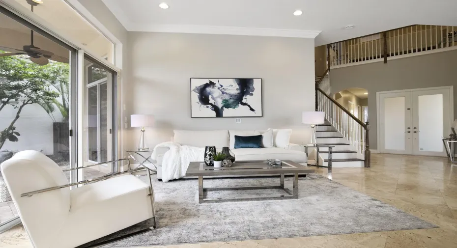 Updated modern with sweeping water views, 4 bdrm, study and 2nd level loft home, in Mirasol Country Club Community. Bright and open floor plan with living, dining, main level Primary suite, main level guest suite, office and family room open to the kitchen. 2nd level loft with 2 bedrooms and bath. Spacious patio surrounded by lush landscaping, inviting pool and spa perfect for relaxing and entertaining. Enjoy Sport Membership Privileges at Mirasol Country Club with two champion golf courses, state of the art practice range and facilities, 15 clay tennis courts, full-service spa, aquatics center, fitness center, family sports complex, walking and biking, grand