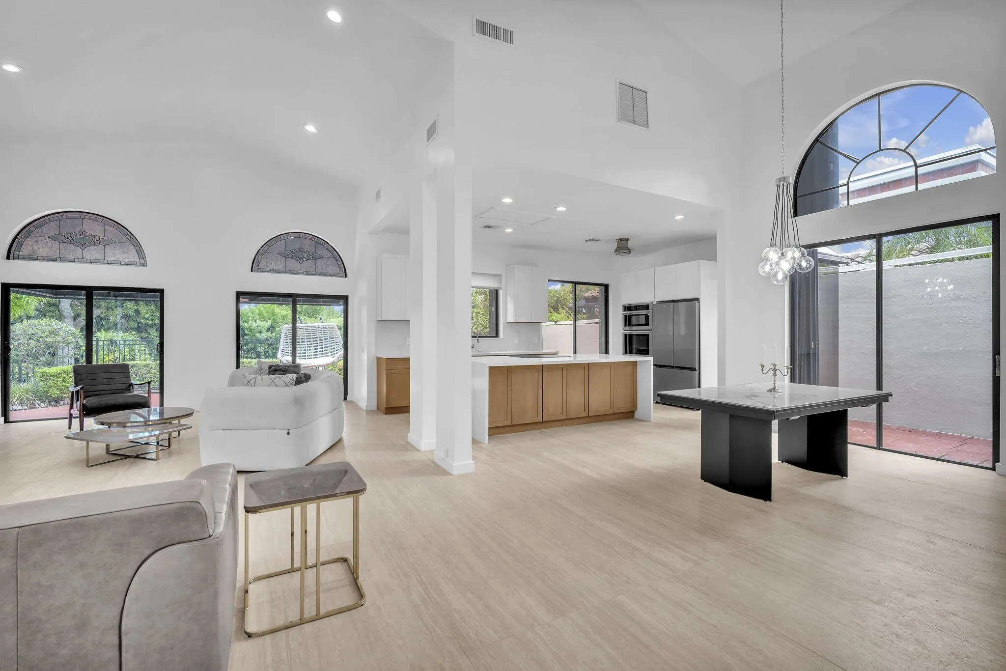 Discover luxury and comfort in this fully renovated 3-bedroom, 2-bathroom home located in the exclusive gated community of Villa Flora at Boca Pointe. Flooded with natural light and designed with soaring ceilings and a sleek open-concept layout, this home is as stylish as it is functional. The designer chef’s kitchen is a true centerpiece, featuring quartz countertops, custom cabinetry, and a modern design perfect for both entertaining and everyday living. The spacious primary suite is conveniently situated on the main level, offering both privacy and elegance. This move-in ready home comes fully furnished with high-end finishes and quality furnishings throughout. Additional upgrades include a new AC system, new water heater, roof replaced in 2012, and a 2-car garage.