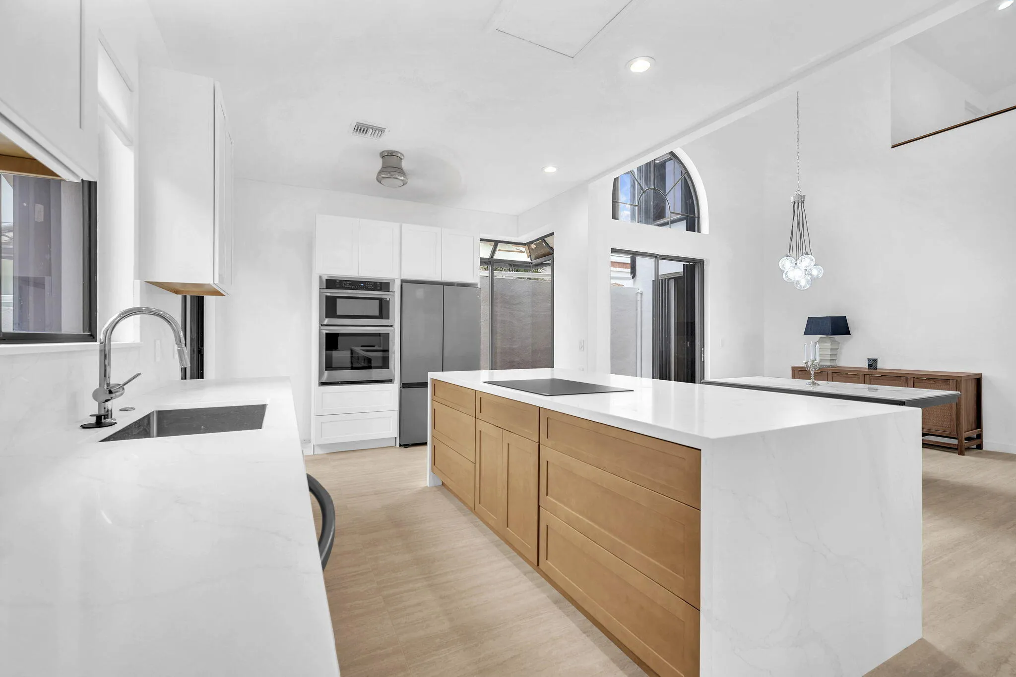 Discover luxury and comfort in this fully renovated 3-bedroom, 2-bathroom home located in the exclusive gated community of Villa Flora at Boca Pointe. Flooded with natural light and designed with soaring ceilings and a sleek open-concept layout, this home is as stylish as it is functional. The designer chef’s kitchen is a true centerpiece, featuring quartz countertops, custom cabinetry, and a modern design perfect for both entertaining and everyday living. The spacious primary suite is conveniently situated on the main level, offering both privacy and elegance. This move-in ready home comes fully furnished with high-end finishes and quality furnishings throughout. Additional upgrades include a new AC system, new water heater, roof replaced in 2012, and a 2-car garage.