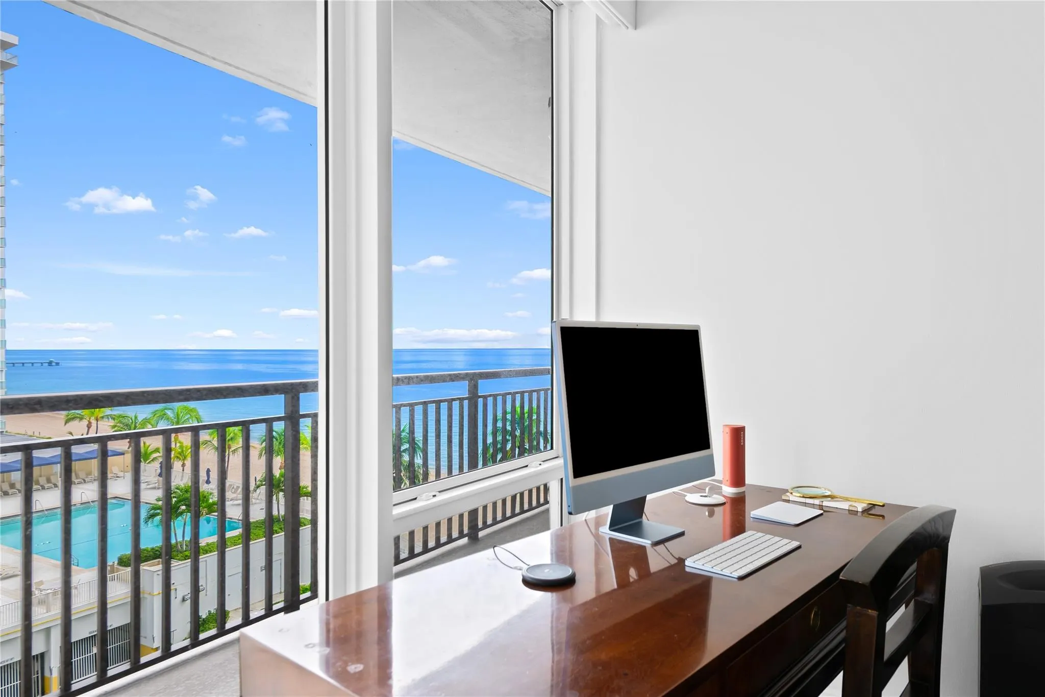 Arrive at your stunning, fully renovated beachfront condominium via semi-private elevator & foyer. Enjoy breathtaking direct ocean views as soon as you enter. Brand new floor to ceiling impact windows and doors with custom electric shades throughout. Open concept with bright white kitchen , stainless steel appliances, butcher block–style countertops, breakfast area, plus a laundry room. Both bathrooms are fully remodeled—the primary with floating vanity, double sinks, oversized shower w/ multiple attachments, and a custom walk-in closet. Imported 24 inch porcelain tiles throughout. Large balcony overlooks the pool and ocean. This flow-through unit feels like a home, with resort-style amenities: Saltwater infinity pool, private beach access, grilling deck, sauna, gym, 24hr security & more.