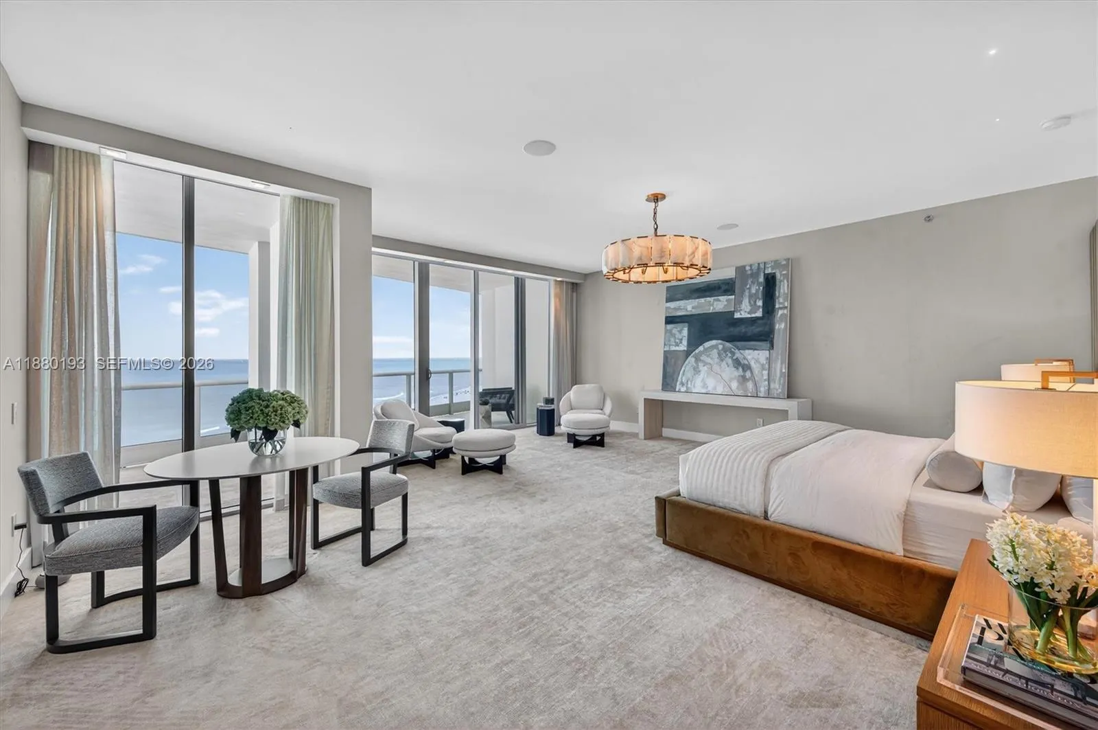 Located in the exclusive Bath Club – Miami Beach’s premier oceanfront enclave – Residence 1804/1805 has been seamlessly combined to offer 7,800 SF of thoughtfully curated living space. This 6-bed residence, each with ensuite baths, also features a private movie theater + home office, blending the privacy of a mansion in the sky with five-star resort amenities. Meticulously designed by Miriam Moore, the home boasts a Italian kitchen by GD Cucine, Gaggenau appliances, Onyx countertops, Crema Bianco limestone flooring. Spa-like bathrooms impress with hand-selected marbles, natural stones, oak cabinetry, and Dornbracht fixtures. Additional highlights include bespoke Italian doors, designer wall coverings, and custom built-ins throughout.