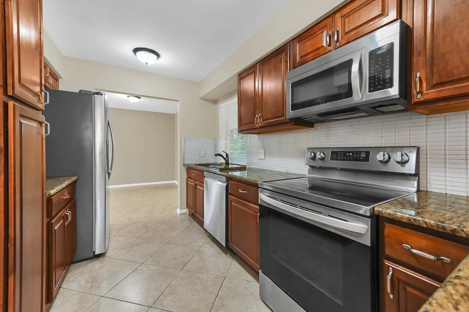 VERY LOW HOA FEE!! Welcome to this charming 1-story home in Springhill, perfectly situated on a desirable corner lot. Offering 1,420 sqft of living space, this property features 3 bedrooms, 2 bathrooms, and a 2-car attached garage with panels plus a driveway that accommodates up to 6 cars.Step inside to find a spacious layout with porcelain tile flooring in the living area and laminate and wood flooring in the bedrooms. The kitchen comes equipped with appliances, including a refrigerator, microwave, and range/oven, along with ample cabinet storage and a countertop with bar seating. A washer and dryer, replaced just 2 years ago, are also included.