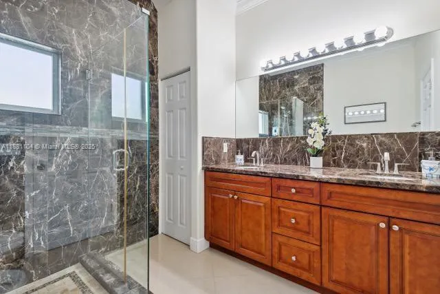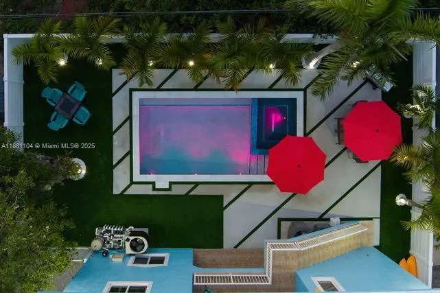 Impeccable and versatile two-story home (2,717 sq ft) featuring 5 bedrooms and 3 bathrooms with elegant finishes throughout. The lower level offers a private 2-bedroom, 1-bath suite with a full kitchen, stainless steel appliances, and porcelain floors. A wrought-iron staircase leads to the main level, showcasing an open-concept living and dining area, a second kitchen, and 3 bedrooms with 2 bathrooms. Enjoy high-end appliances, stylish furnishings included, and a resort-style backyard with a 12×24 saltwater pool, spa, heater, cooler, and modern paver design with artificial turf. Residents have access to a private waterfront park with a boat ramp, picnic area, and breathtaking sunrises. Move-in ready!