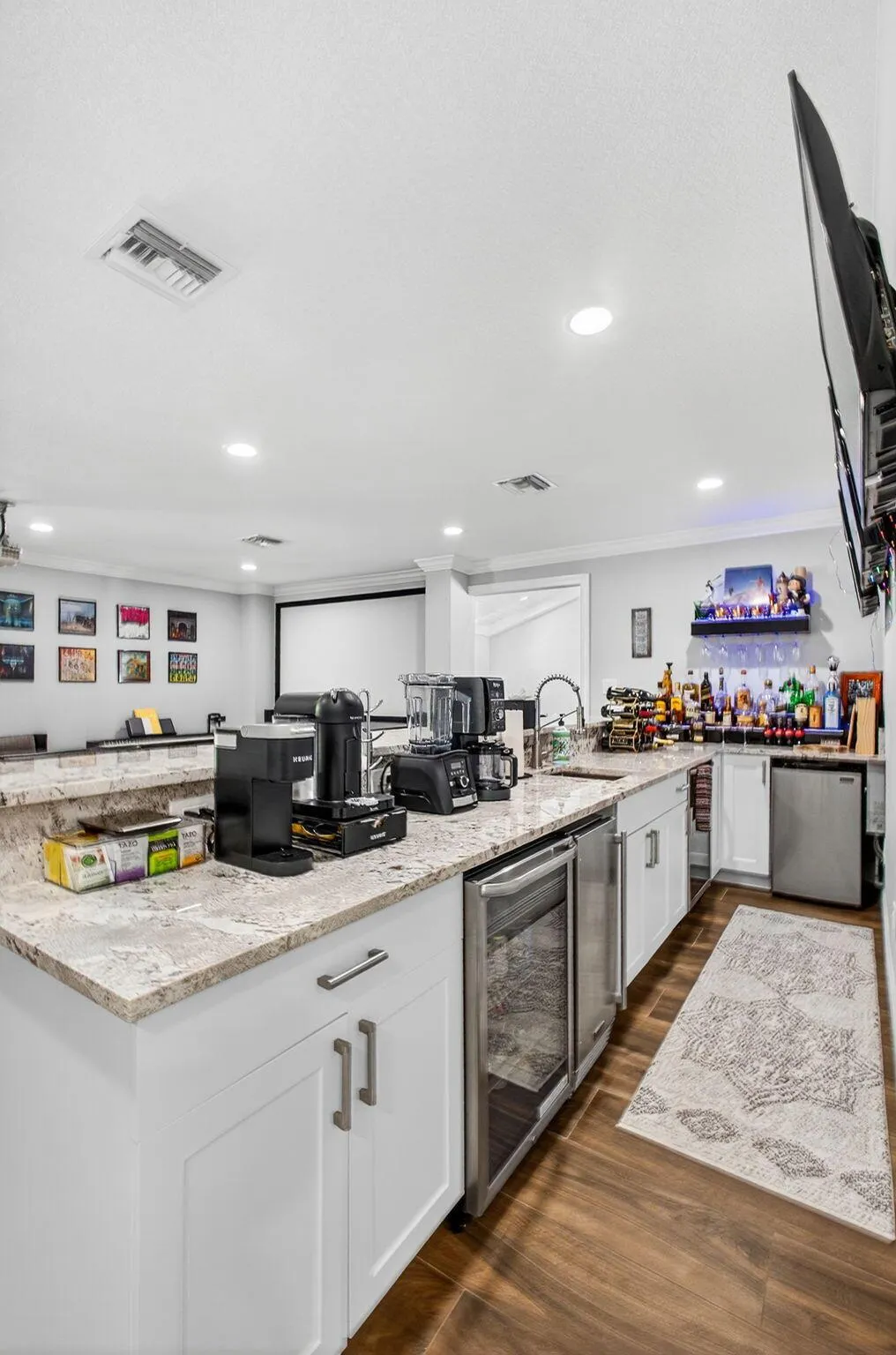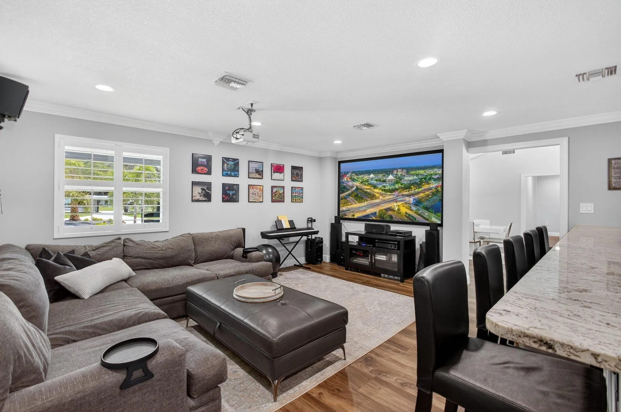 Rare Lakefront Estate on 1.3+ Acres – Fully Remodeled, No HOA!Seize this extraordinary opportunity to own a stunning 5-bedroom + office, lakefront home on a sprawling 1.3+ acre lot, free from HOA restrictions. This meticulously remodeled CBS-constructed residence blends luxury and functionality with top-of-the-line features. Enjoy peace of mind with impact glass windows, a new metal roof, and a secure front entry gate. The gourmet kitchen is a culinary masterpiece, boasting high-end appliances, custom cabinetry and oversized Island.The home’s open-concept design showcases vaulted ceilings, creating an airy and grand atmosphere. Relax in the state-of-the-art movie theater w/ full Sports Bar or unwind by the brand-new 17×34 pool and Hot tub, complete with a fully equipped summer kitchen