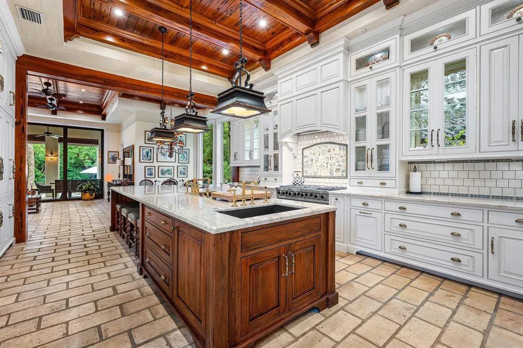 Completely renovated by GE Architecture and Lost Craft Builders, this European-inspired villa combines timeless elegance with modern luxury in the exclusive Delray Ocean Estates North. Homeowners enjoy private beach access and a shared tennis court. Encompassing 9,700+/- total sq ft, the six-bedroom estate features soaring designer ceilings, pecky-cypress accents, brick-clad details, a home theatre, wine cellar, library with sauna, and guesthouse. The chef’s kitchen offers custom Mouser cabinetry, Taj Mahal quartz, premium Miele appliances, and a SubZero suite. The primary suite includes dual baths, two walk-in closets, gym/office, and a wraparound ocean-view terrace. Outdoor living is unmatched with a loggia, summer kitchen, firepit, putting green, and saltwater pool/spa.
