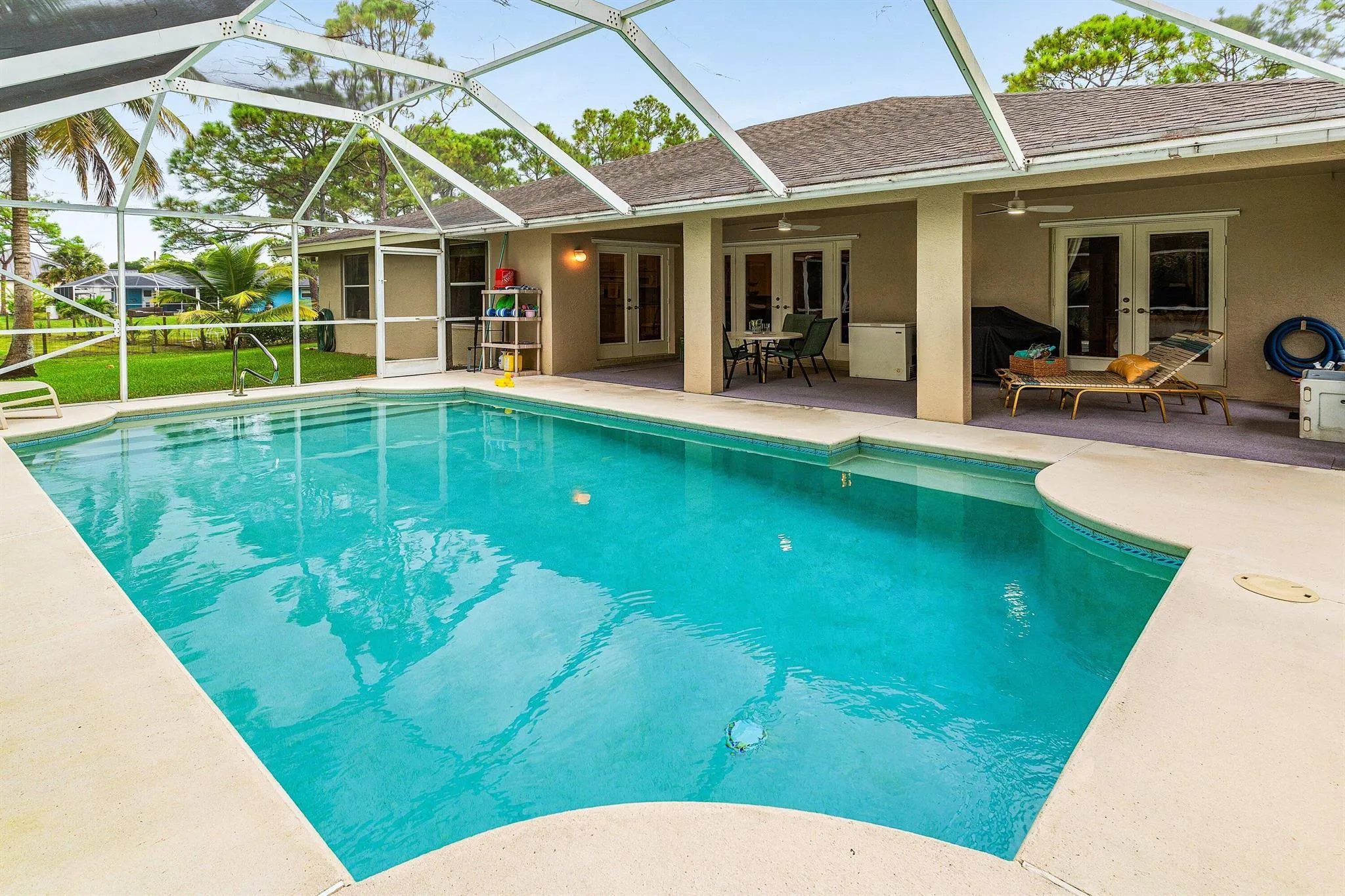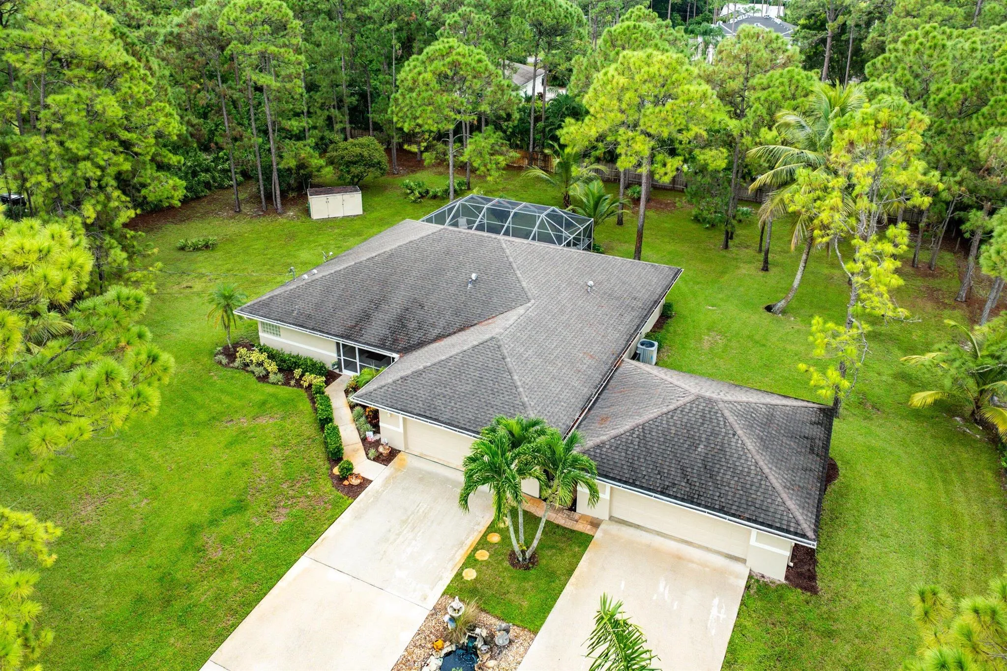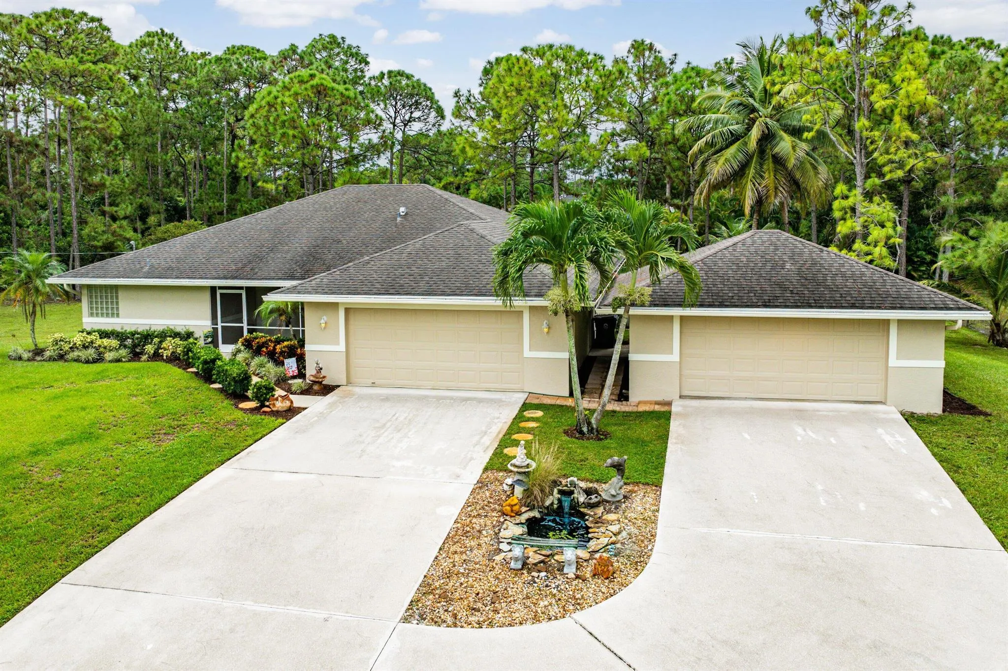 WELCOME HOME This gem is resting on a premium 1.15 acre lot and boasting 3 bedrooms, 483sqft theater/BONUS room, 2 full baths, detached 2 car garage, sparkling pool, upgrades throughout, 2018 roof, landscaping galore, superb location, quiet paved street and this beauty is very well maintained! ENTERING you will discover, a high and dry fully fenced lot, convenient double concrete driveway, koi pond and a screened in front porch that brings you inside where you are greeted by a soaring 13′ ceiling, spacious foyer, great room, natural lighting and a remodeled kitchen that features; granite countertops, Whirlpool Gold appliance package, double pantries, bar and cozy 14′ x 10′ breakfast nook that overlooks the pool. PASSING THROUGH you will find tray ceilings, dynamite split (CLICK)
