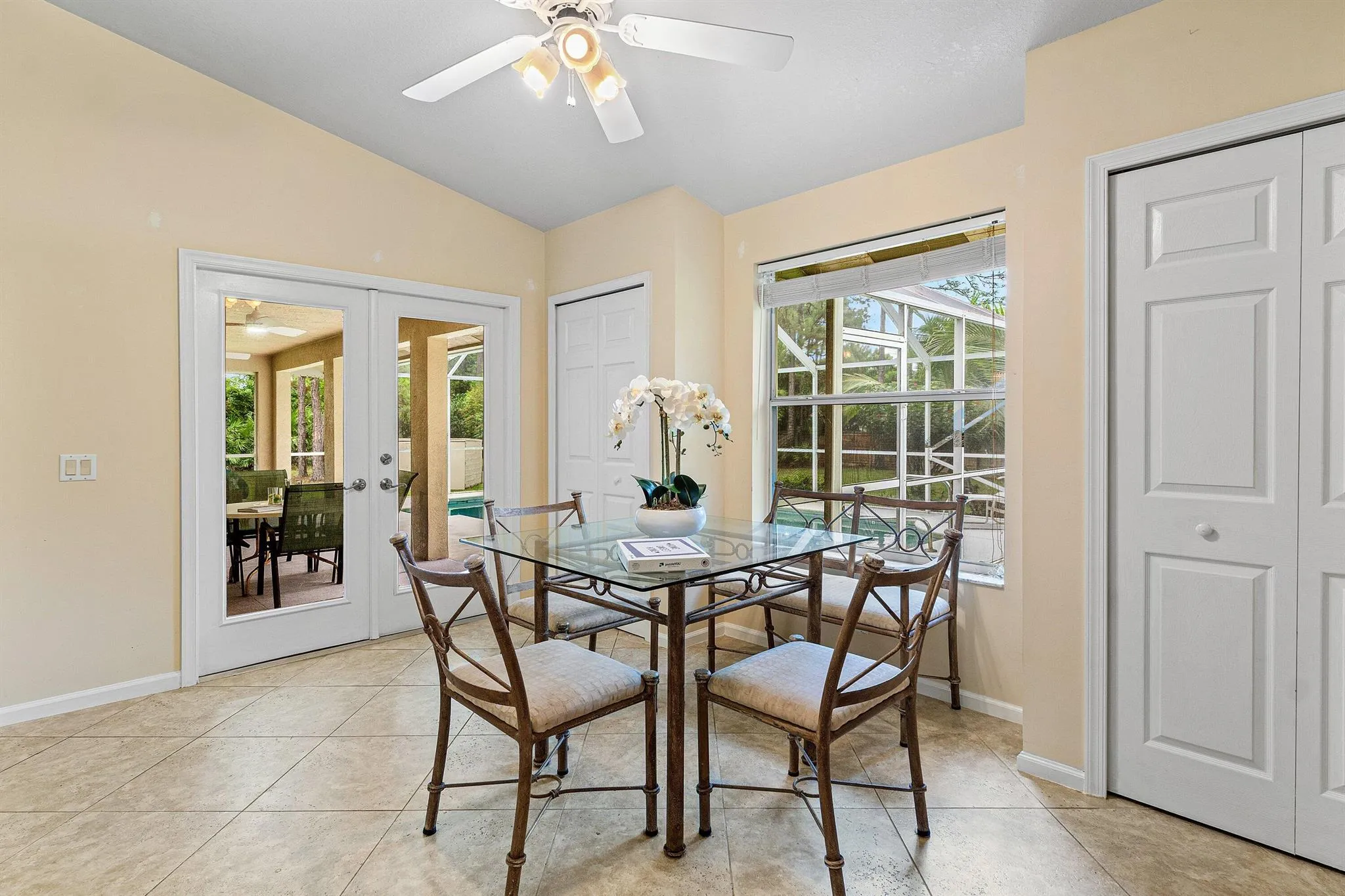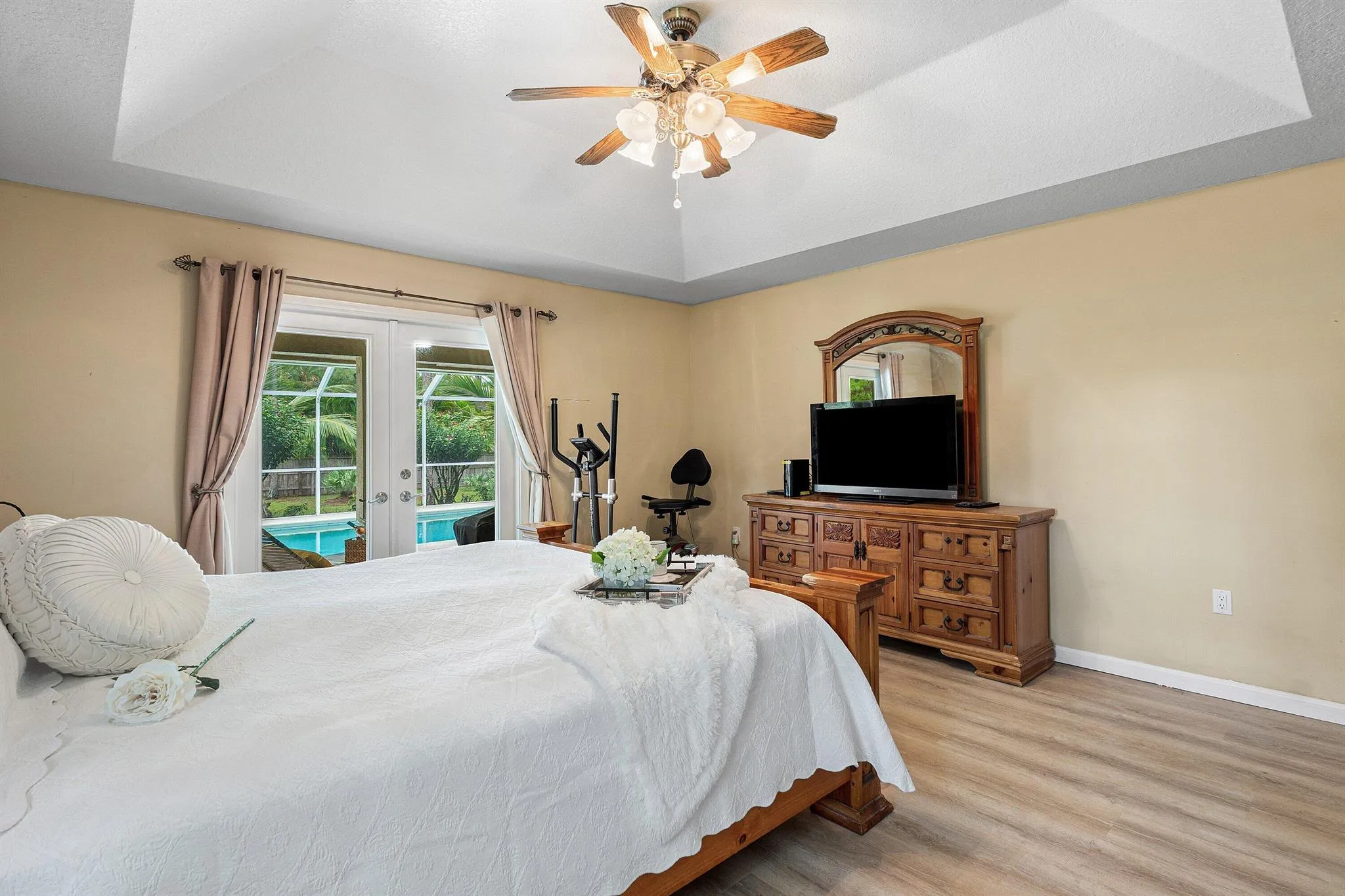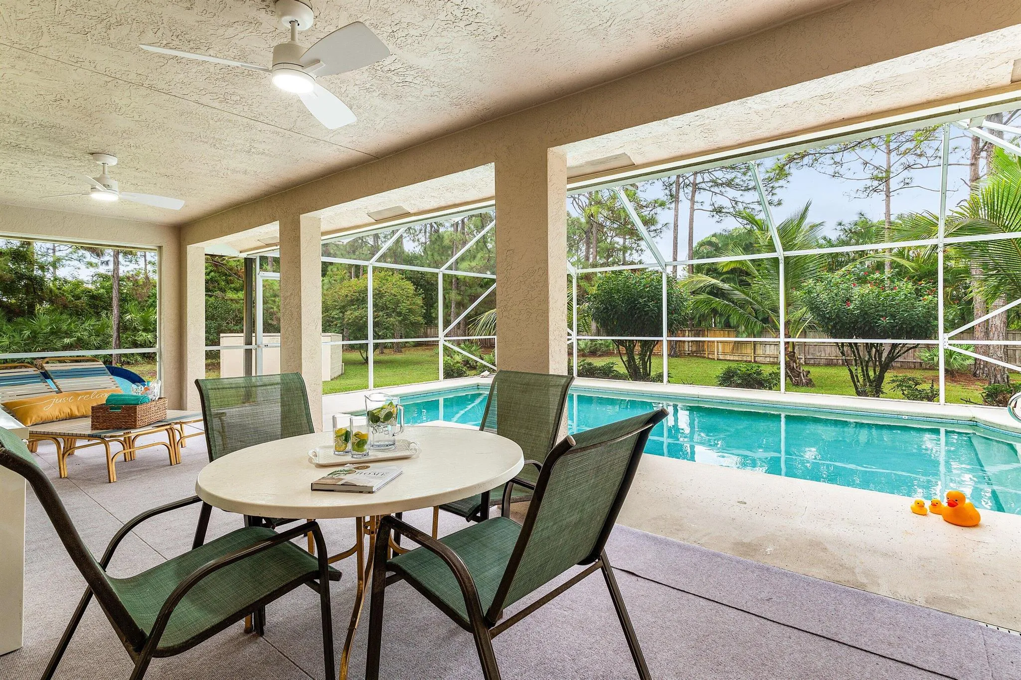 WELCOME HOME This gem is resting on a premium 1.15 acre lot and boasting 3 bedrooms, 483sqft theater/BONUS room, 2 full baths, detached 2 car garage, sparkling pool, upgrades throughout, 2018 roof, landscaping galore, superb location, quiet paved street and this beauty is very well maintained! ENTERING you will discover, a high and dry fully fenced lot, convenient double concrete driveway, koi pond and a screened in front porch that brings you inside where you are greeted by a soaring 13′ ceiling, spacious foyer, great room, natural lighting and a remodeled kitchen that features; granite countertops, Whirlpool Gold appliance package, double pantries, bar and cozy 14′ x 10′ breakfast nook that overlooks the pool. PASSING THROUGH you will find tray ceilings, dynamite split (CLICK)