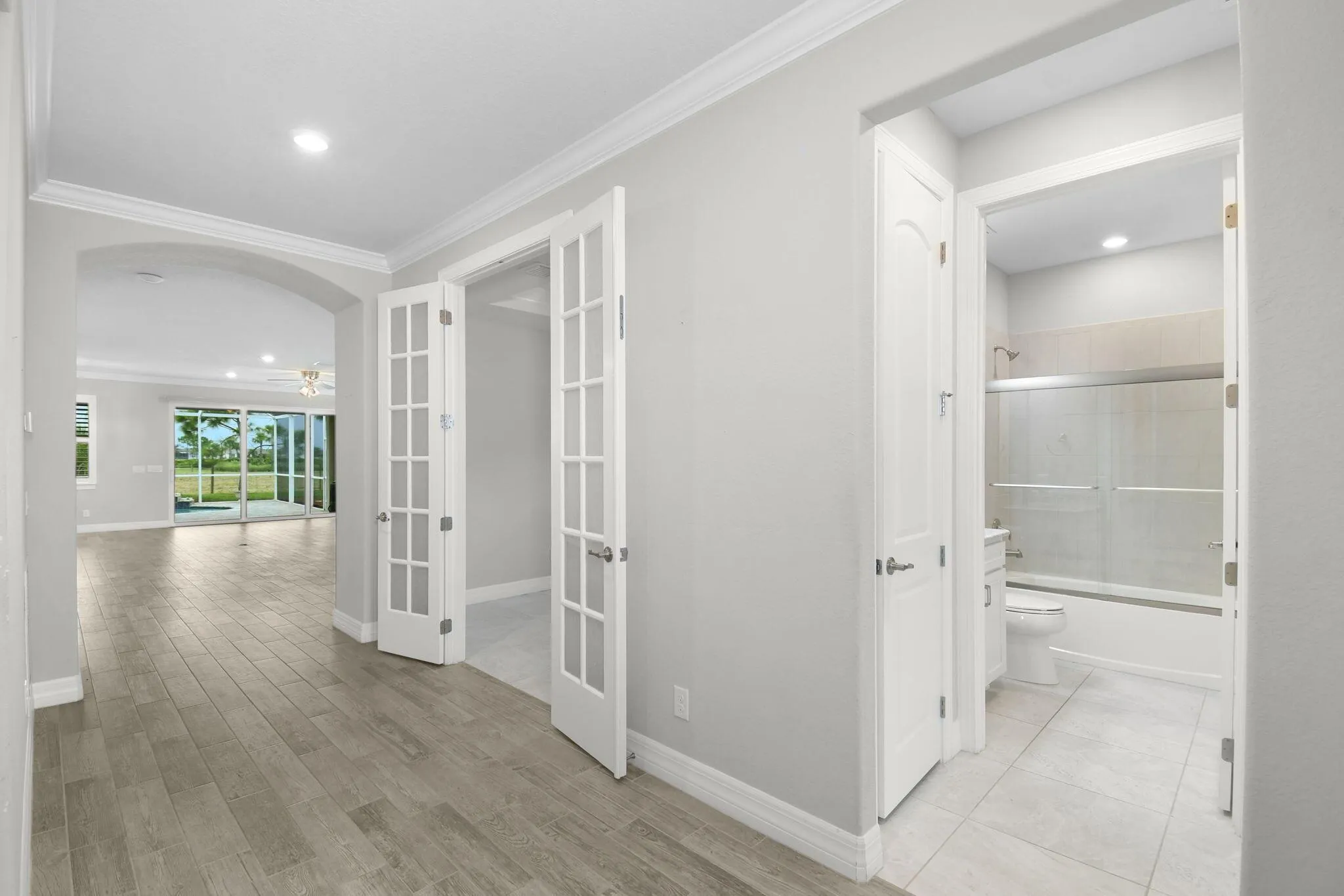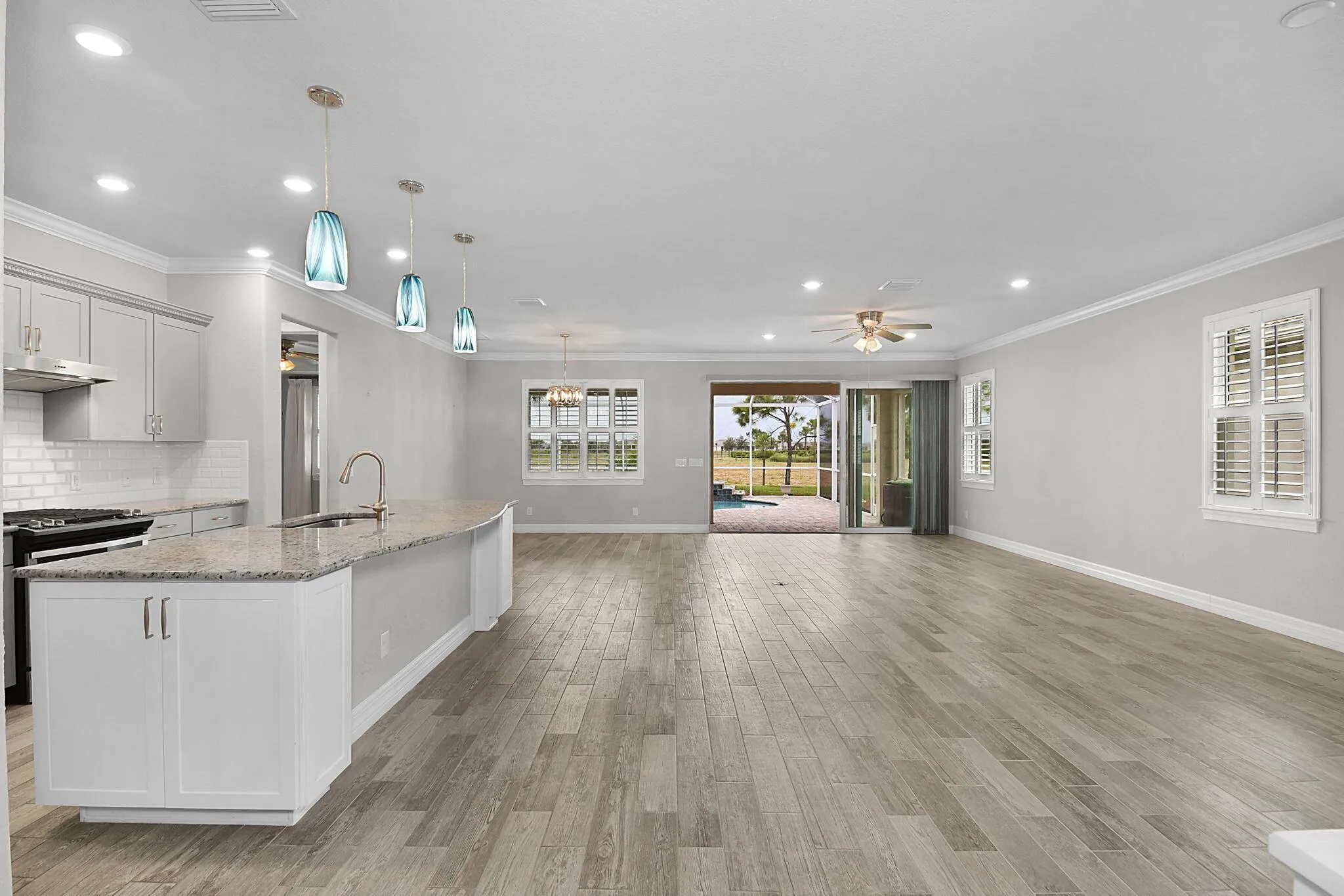 ***SELLER PAYING OFF THE NEXT 18 YEARS OF THE CDD*** New owner will not have one!! Experience the best of 55+ resort-style living in this beautifully designed and very spacious 2-bedroom PLUS den, 2-bath POOL home in the sought-after Del Webb at TRADITION community. This modern residence offers an open and airy floor plan with upgraded finishes, full impact glass windows, volume ceilings throughout, oversized laundry room with upgraded cabinetry, and a covered, screened patio that overlooks a sparkling saltwater pool–set on a preserve, perfect for entertaining or relaxing year-round. The oversized open-concept home features plantation shutters, crown molding, upgraded baseboards, custom built-ins, upgraded countertops and an upgraded extended shower in the owners’ suite. The garage will