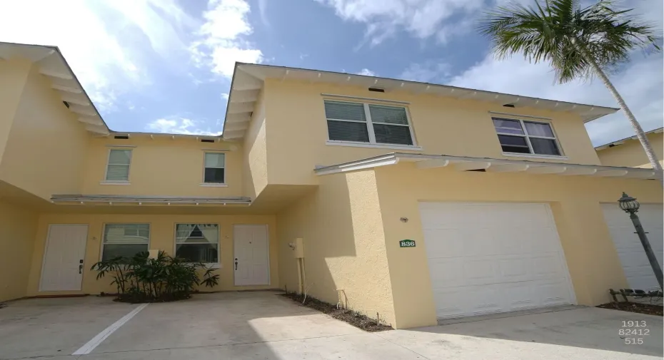 Centrally and conveniently located near shops, dining, beach and entertainment. This is lovely and spacious two-story townhouse with soaring high volume ceilings with lots of natural light and cherry wood floor throughout the ground level, which consists of a formal living and dining, kitchen, a half-bathroom and one car garage; White wood cabinets, and granite counter-tops in the kitchen. Laminate-wood floors upstairs which consists of two bedrooms and two bathrooms. There is a charming patio, perfect for BBQ and entertaining. Walk to the community pool. The location is ideal, just 1 mile from the beach and walking distance to Deerfield Elementary