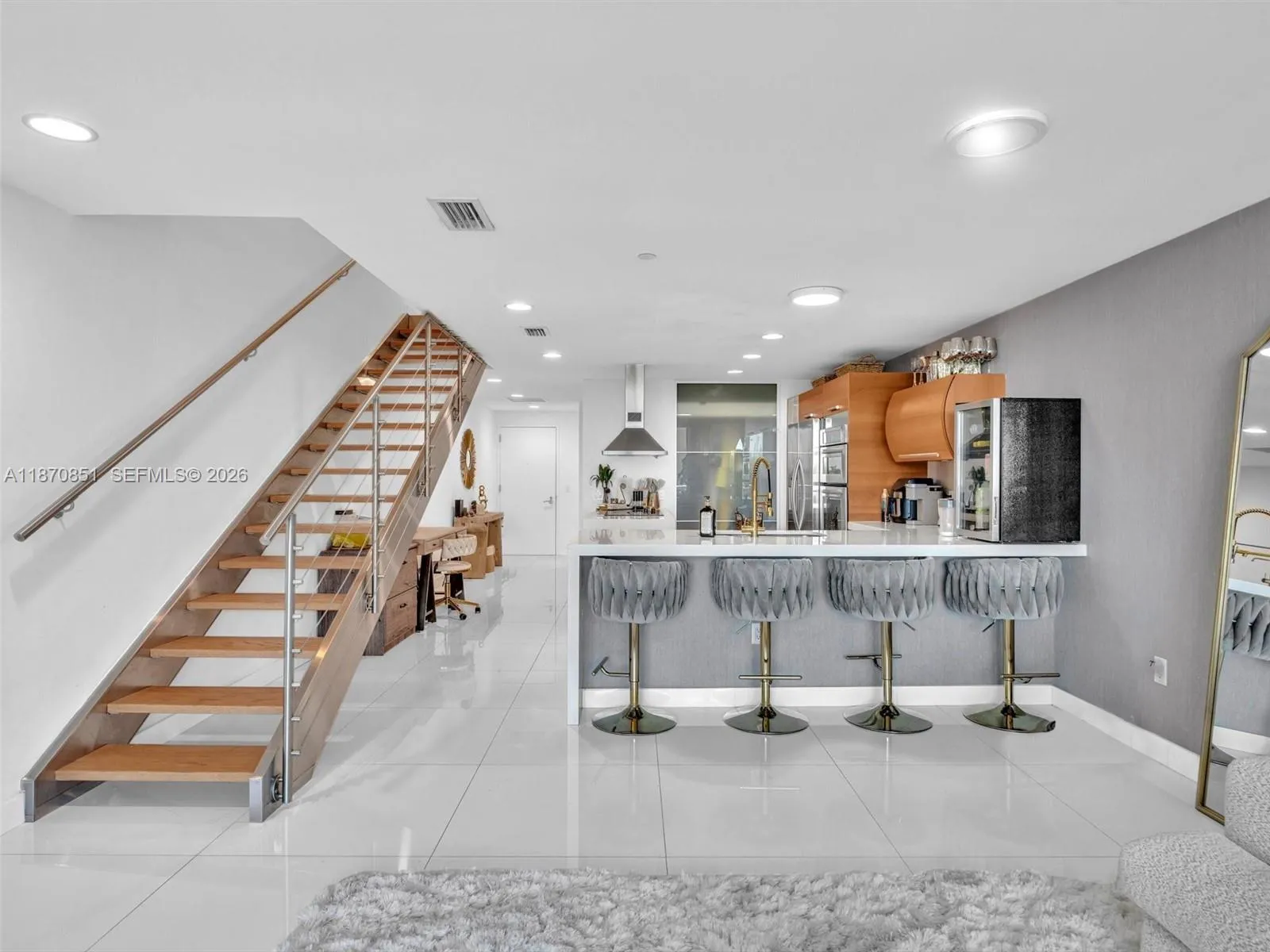 Discover contemporary waterfront living in this beautiful, modern two-story condo at Artech Residences, Aventura. Spanning 1,552 sq ft, this bright and new home features two spacious bedrooms with ensuite baths and private balconies, plus an enclosed first-floor den perfect as an office, fitness room, or creative space. Designer details include a waterfall-edge kitchen island, custom breakfast nook, and a master bath enhanced with sleek glass accents.rnArtech offers a true resort lifestyle with two swimming pools, hot tub, cinema room, state-of-the-art fitness center with yoga studio, racquet court, EV charging, and direct marina and boardwalk access. Ideally situated near Aventura Mall, world-class dining, scenic parks, top-rated schools, and the Aventura Recreation Center, this residence delivers both luxury and convenience in one of Miami’s most desirable communities.