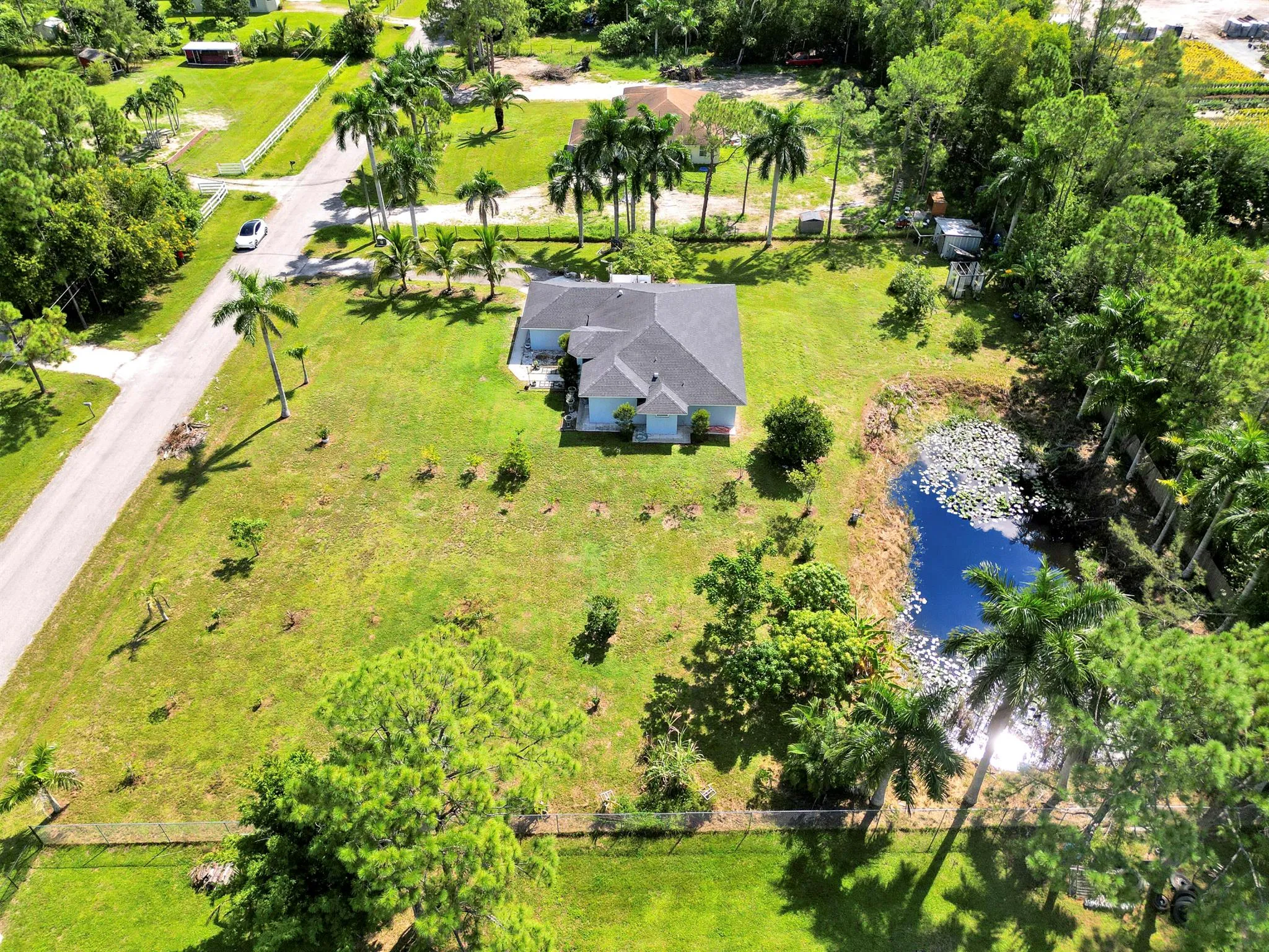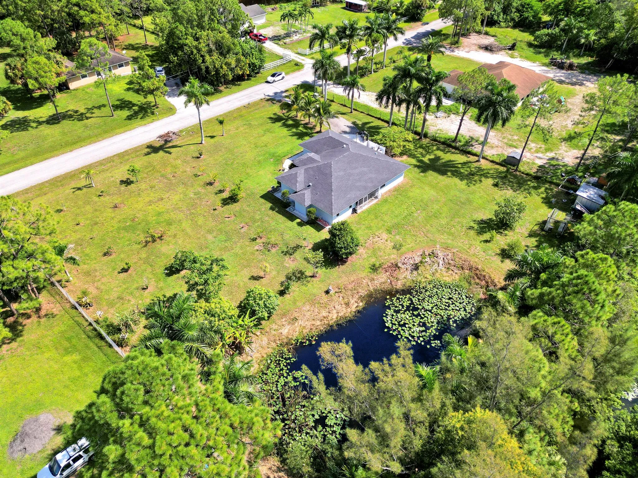 Welcome to this spacious 4 bedroom 2 bathroom home with a 2 car garage, set on a private 1.29 acre lot in The Acreage with no HOA. Built in 1998, the home offers 1,798 living sqft with a split floor plan, tile flooring in the common areas and bathrooms, and laminate in the bedrooms (No Carpet)!Highlights include upgraded bathrooms, a screened in patio, and large backyard with your very own pond. The roof was replaced in 2020 and the septic system was cleaned and inspected in August 2025. The kitchen counters and other areas need updating, giving buyers the opportunity to add personal touches. With some TLC, this property can be transformed into your dream oasis.