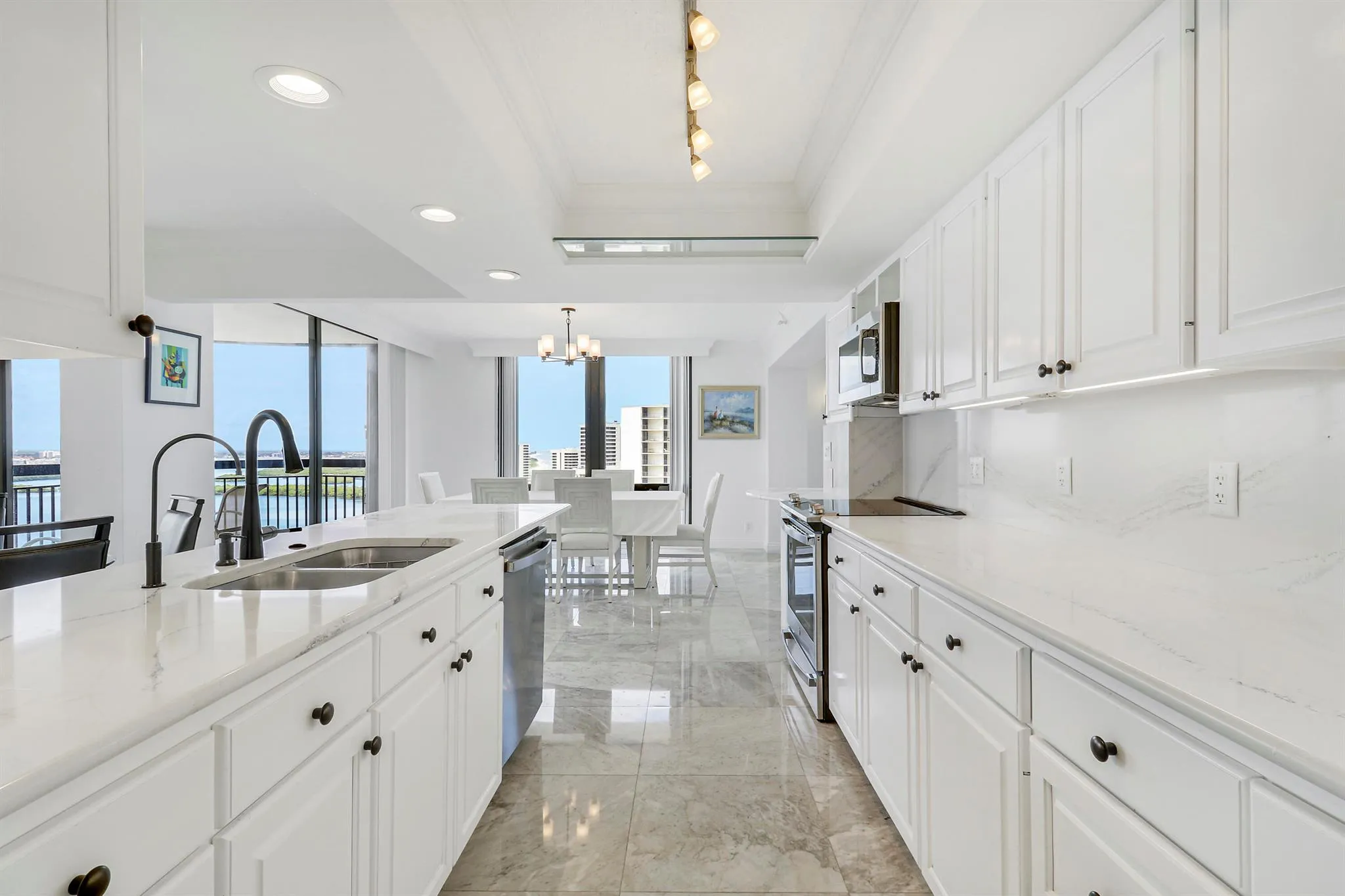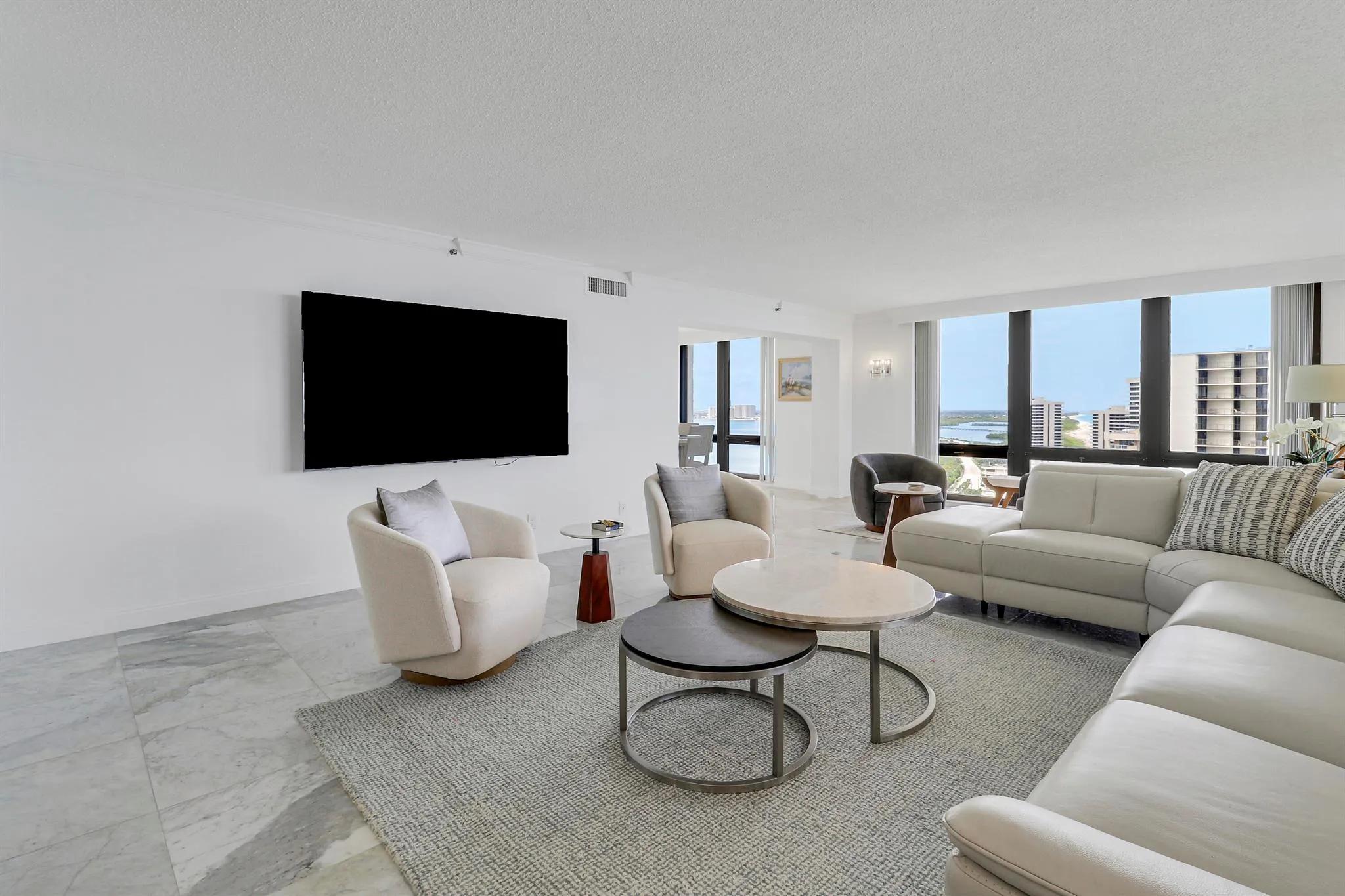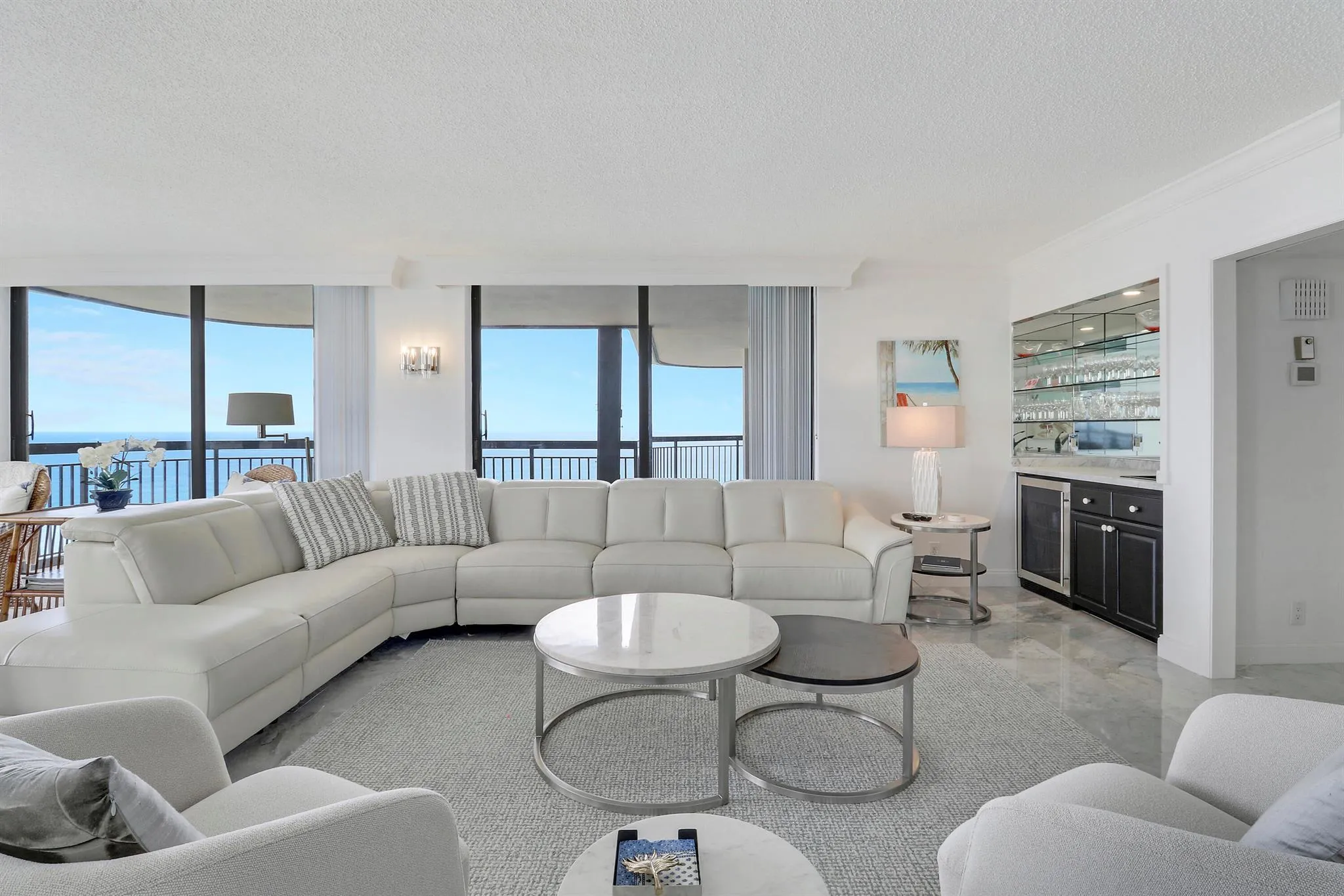 Experience a life of breathtaking luxury in this exceptional high-floor residence, where stunning panoramic views of both the Atlantic Ocean and Intracoastal Waterway create a living masterpiece from every window. This magnificent 3-bedroom, 3.5-bath condo features a kitchen with custom cabinetry and elegant granite, elegant bathrooms, and a sophisticated blend of plush carpeting and sleek marble flooring. With over 2,700 square feet of interior space, the home seamlessly connects to its sprawling 700-square-foot, wrap-around terraces, offering the perfect outdoor oasis. Residing in a prestigious 5-star building, you will also have access to world-class amenities including a heated pool, a fully equipped gym, a steam room, garage parking, and direct private beach access.