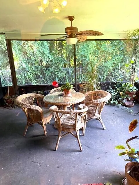 Beautifully updated 1 owner CBS home w/Tile floors throughout, AC system 2020, Roof 2023, Accordion Shutters on all windows, including front door, crown molding, chair rails in different areas, textured walls. Updated Kitchen w/42” cabinets, granite counters, w/matching back splash, & newer appliances. Laundry closet w/stack Full size Washer/Dryer. Family room features: formal dining area, snack bar w/granite counter, Slider to Screened patio, both baths feature newer sinks/vanities/granite counter, walk-in showers, mirrored medicine cabinets, & ADA type toilets. Security w/wired cameras in and out + the ring doorbell system. Ceder lined closets w/professional shelving. Sprinkler system w/well water. Extended side yard w/metal shed + fenced rear yard. Great home for this price so HURRY!