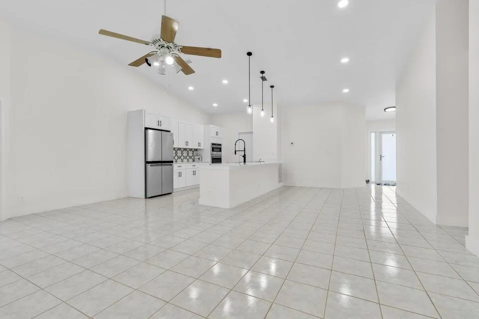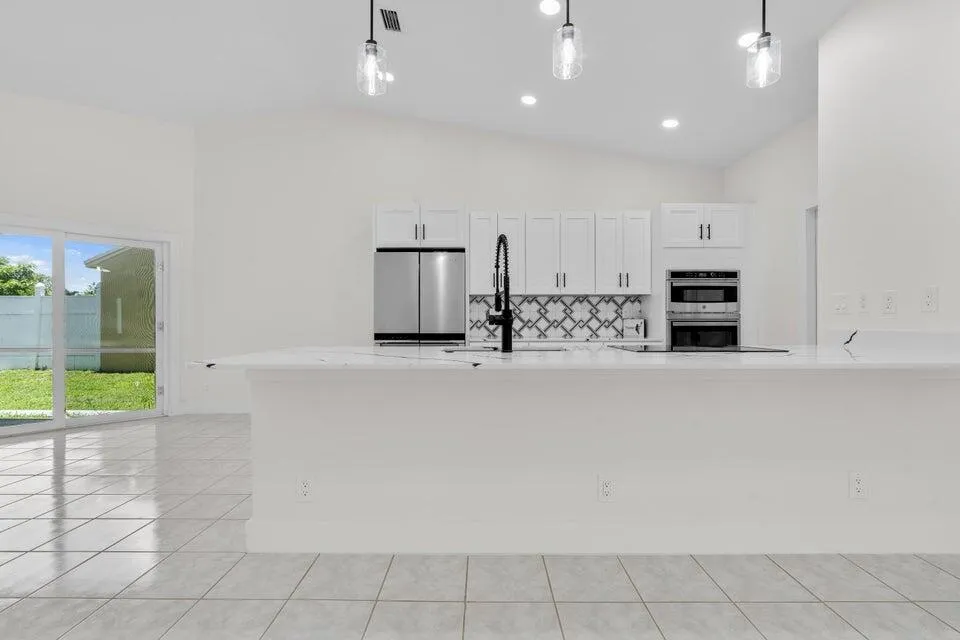 Available for immediate move-in. No HOA approval. Move in with only first month and security deposit, fast approval, pet friendly. This immaculate single-family home boasts 3 spacious bedrooms, 2 bathrooms, and a 2-car garage. Step inside to an open-concept living area with high ceilings, freshly painted for a modern touch. The heart of the home, a beautifully updated kitchen, awaits with sleek quartz countertops, brand new stainless appliances, and timeless wood cabinetry. Elegant marble and warm wood flooring stretch throughout the home, leading you to the expansive master bedroom, complete with a walk-in closet and an en-suite featuring a walk-in shower. Enjoy peace of mind with a new roof, A/C installed in 2022, and a Water Heater from 2021. Step outside to a large backyard.