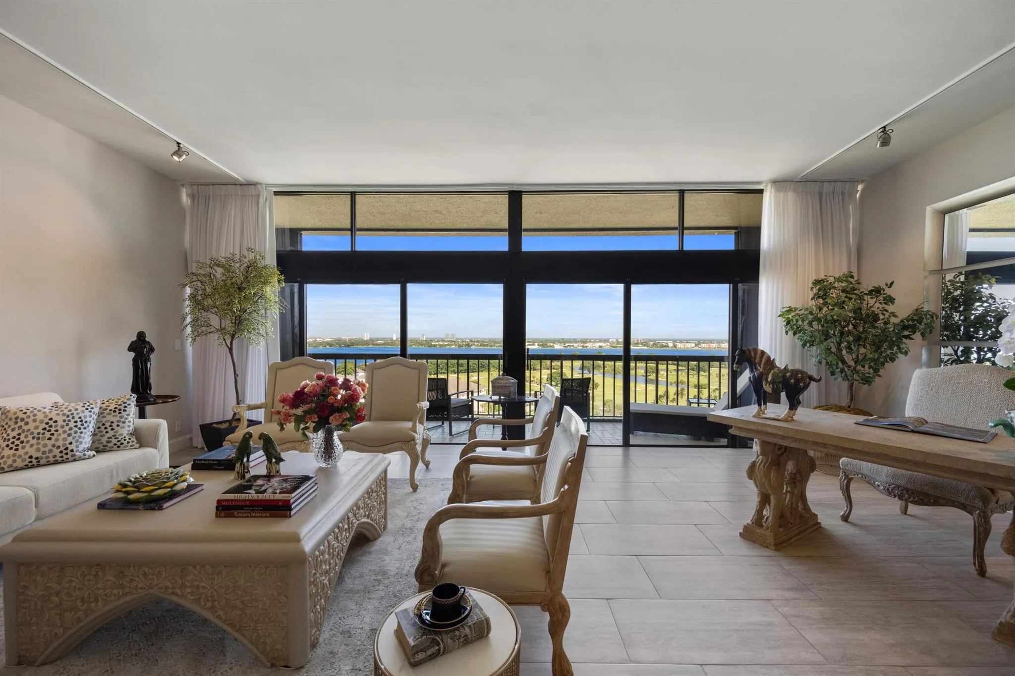 Magnificent lake, golf course and ocean views are the most fabulous features of this spectacular penthouse residence. It offers 10-foot ceilings, floor-to-ceiling windows, two large bedrooms with spacious en-suite bathrooms, an open gourmet kitchen with specimen granite countertops, stainless steel appliances and a kitchen island. This just renovated designer furnished apartment presents a lovely residential experience, a very tranquil space featuring privacy with only four units on the floor.