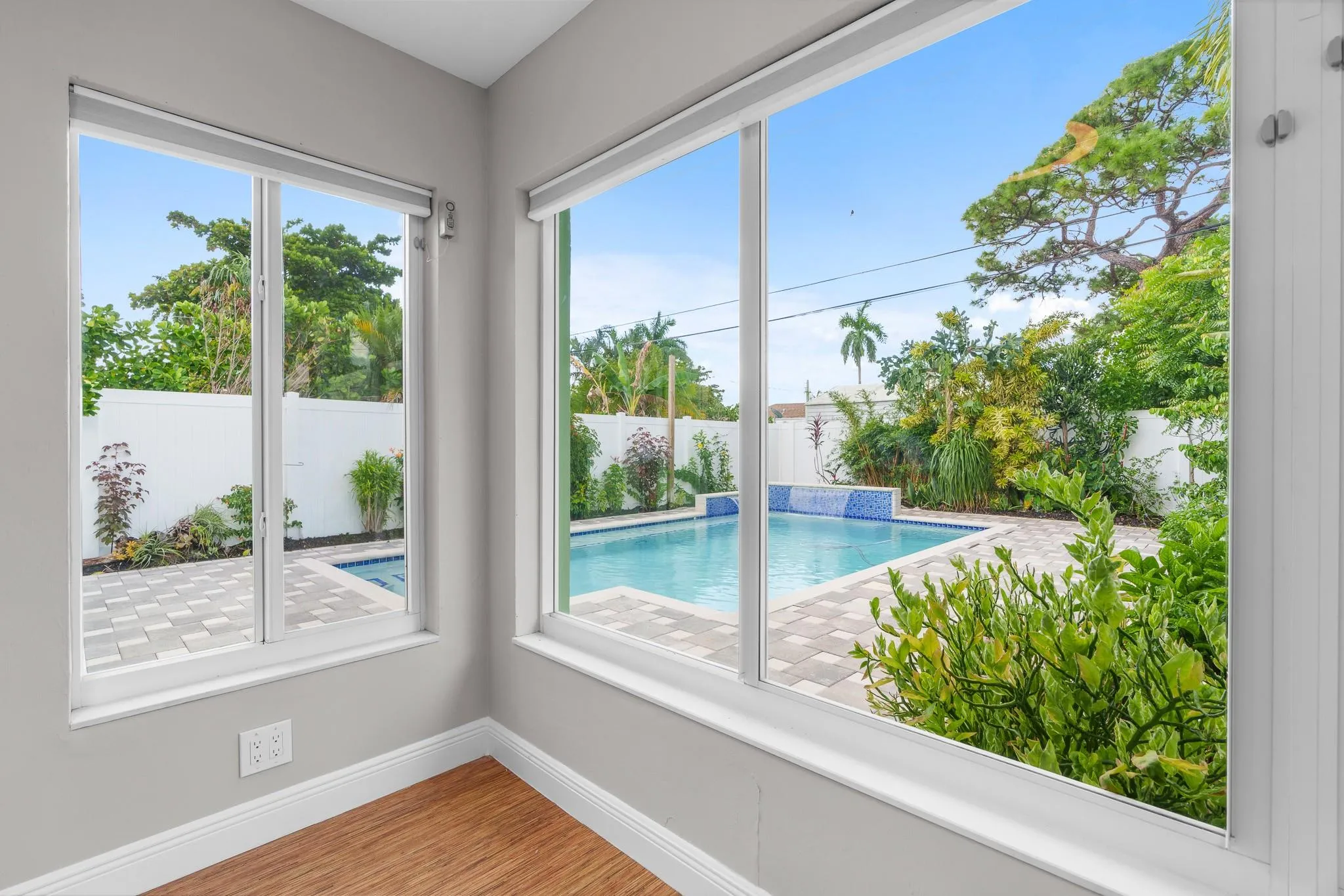 What a stunning ‘move in’ ready 2-bed, 1.5-bath single-family pool home this is. On entering through the covered porch, you will notice a large upgraded kitchen – a true chef’s kitchen. A flex room that can serve as an office, den, or bedroom. Renovated bathrooms. Full house water filtration system. The Florida room is light and bright. Terrazzo floors under existing flooring. New fence (2025). Heated saltwater pool with a waterfall, a sprinkler system, outdoor shower, and large storage shed. Coupled with the beautiful mature and well maintained landscaping it creates a gorgeous oasis with two producing starfruit trees. A/C system (2025). Roof (2013). Located just 3.5 miles from the beach and minutes from downtown Oakland Park. This house provides both convenience, comfort and privacy.