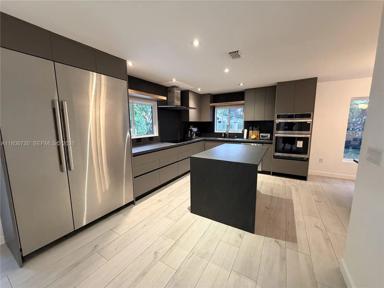 Brand new high end kitchen, solar panels with 2 Tesla batteries, oversized fully fenced yard, infinity pool, huge storage container shed, jacuzzi and outdoor kitchen-WOW, this house has it all! Gutted and rebuilt within the last 5 years, like a brand new construction. Amazing 5 bedroom pool home located in a quiet South Miami neighborhood. Upon entering you are welcomed by a spacious living room and an open kitchen with cooking island, quartzite countertops, commercial stainless steel appliances & wooden cabinets boasting generous storage potential. Primary suite features a floor-to-ceiling tile shower. Tropical back yard with fruit trees, infinity pool, spa, wood deck and outdoor kitchen is your favourite spot to sip your coffee, sunbathe and enjoy gatherings with friends and family. Home has complete impact protection. Second living room with kitchenette ideal for guests! Solar panels with Tesla Batteries and a large storage container complete the offering. A Beautiful Miami Home! MAKE IT REIN!