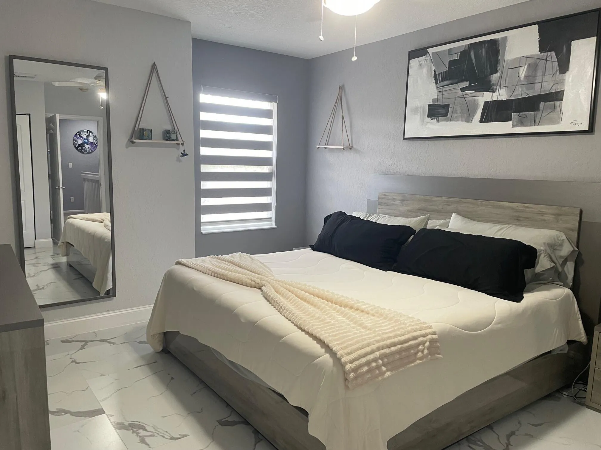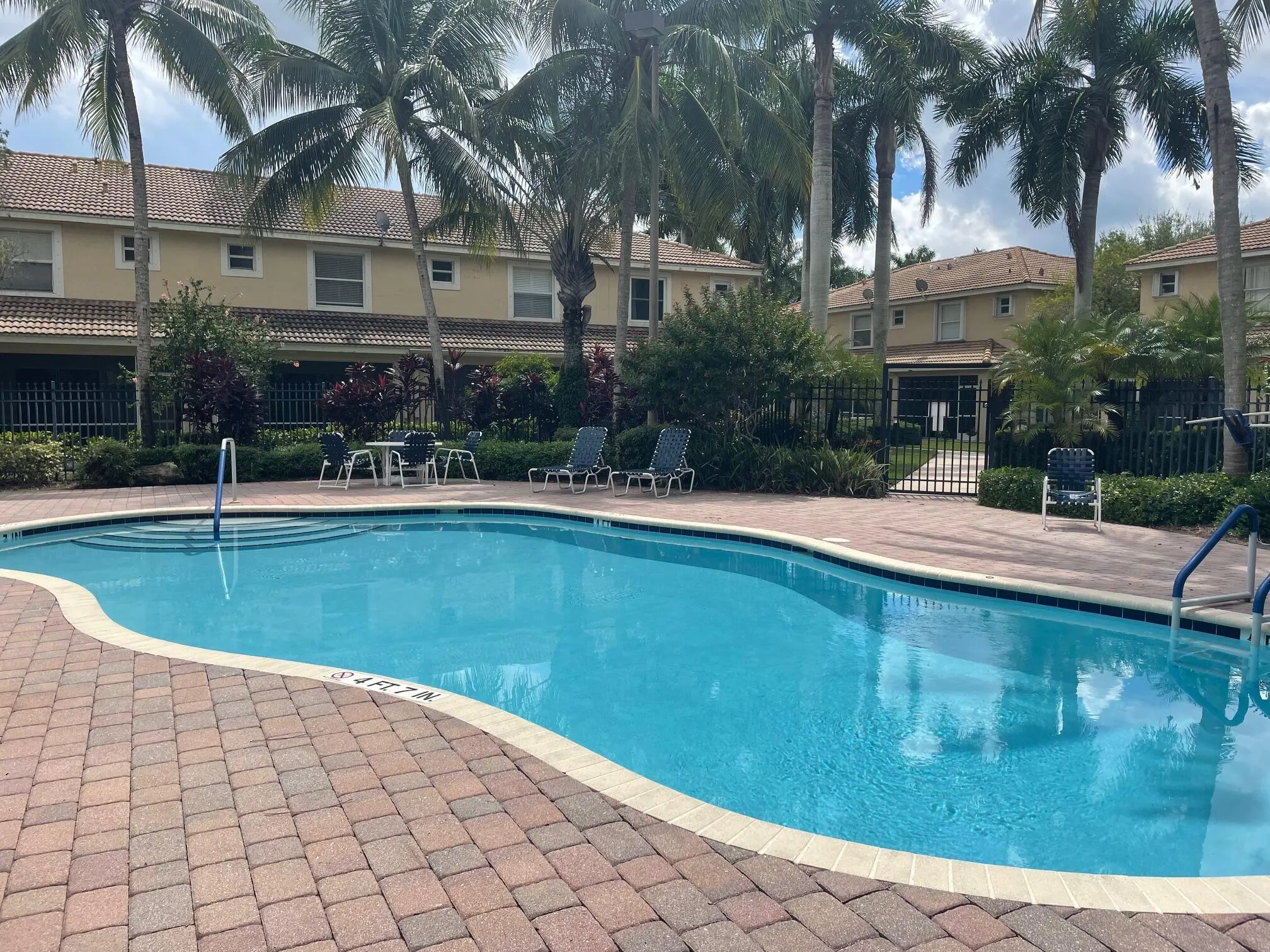 Such a beautiful, move-in ready all ages TH in Wellington. Hurricane protection. OPEN, light and bright, white kitchen with SS appliances with large countertop, great for entertaining and for bar stools. Pantry included. Coffee/liquor bar. Gorgeous tile floors on the first floor. Half bath on the first floor for guests. Newer luxury window treatments. Screened patio with storage. Second floor loft/home office/playroom/exercise room. Guest bedroom could have private bathroom. The primary suite is bright and large. White and bright bathroom, double sinks, shower with window. Short walk to pool. Easy access to all that is Wellington. Great local landlord.