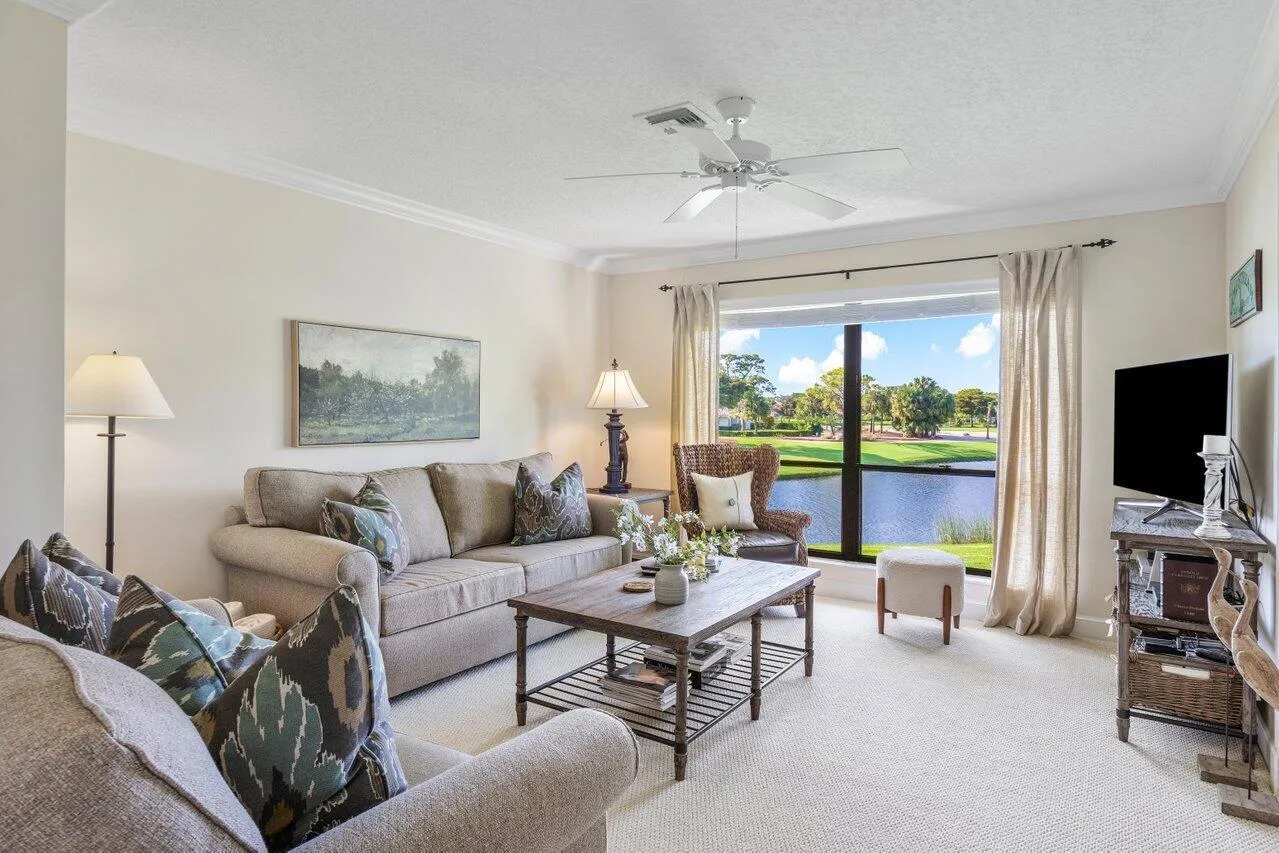 Enjoy gorgeous golf course and lake views from this stunning 3-bedroom, 2-bathroom second-floor residence in the Bobwhite A area of Quail Ridge. The spacious and airy layout includes a screened breakfast terrace, perfect for enjoying peaceful mornings. The versatile third bedroom/den features sliding doors for added privacy, making it ideal for guests or a home office. Experience the best of country club living with picturesque surroundings and elegant comfort. Quail Ridge is a mandatory membership, private club community offering golf, tennis, pickleball, spa & fitness and a beautiful clubhouse. New roof!