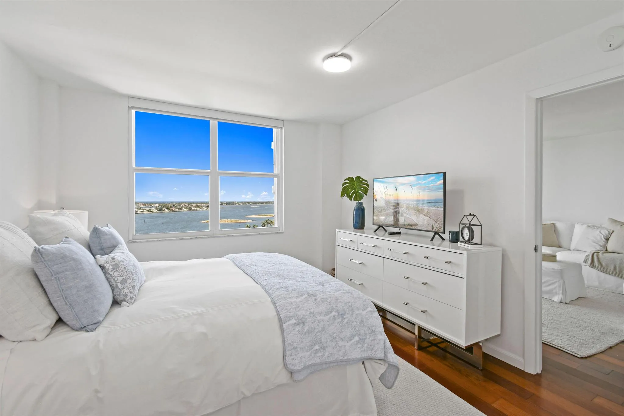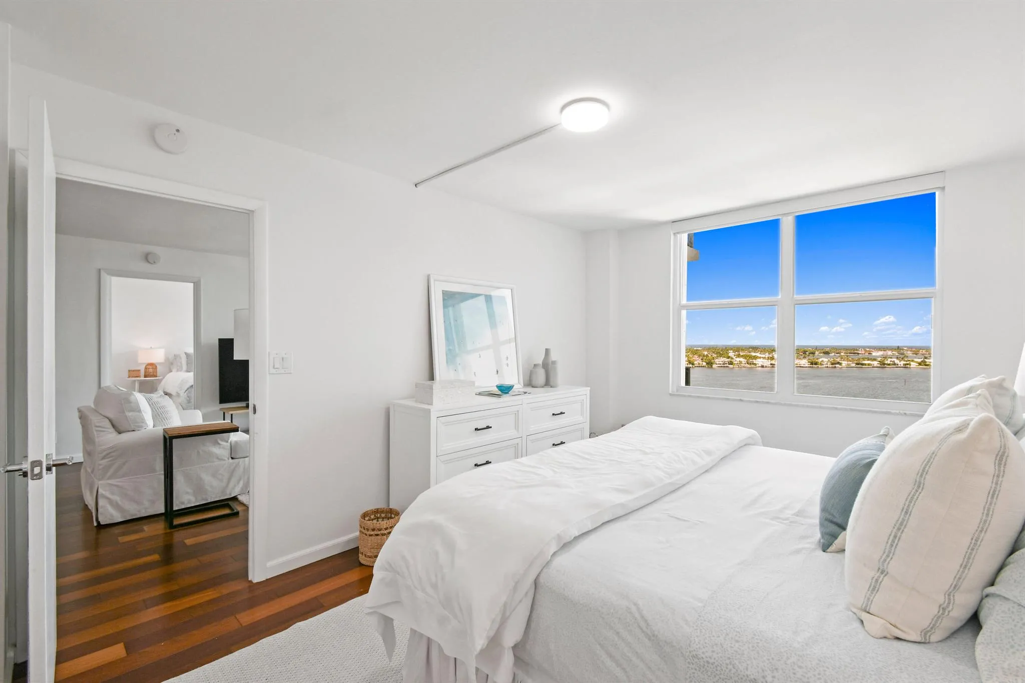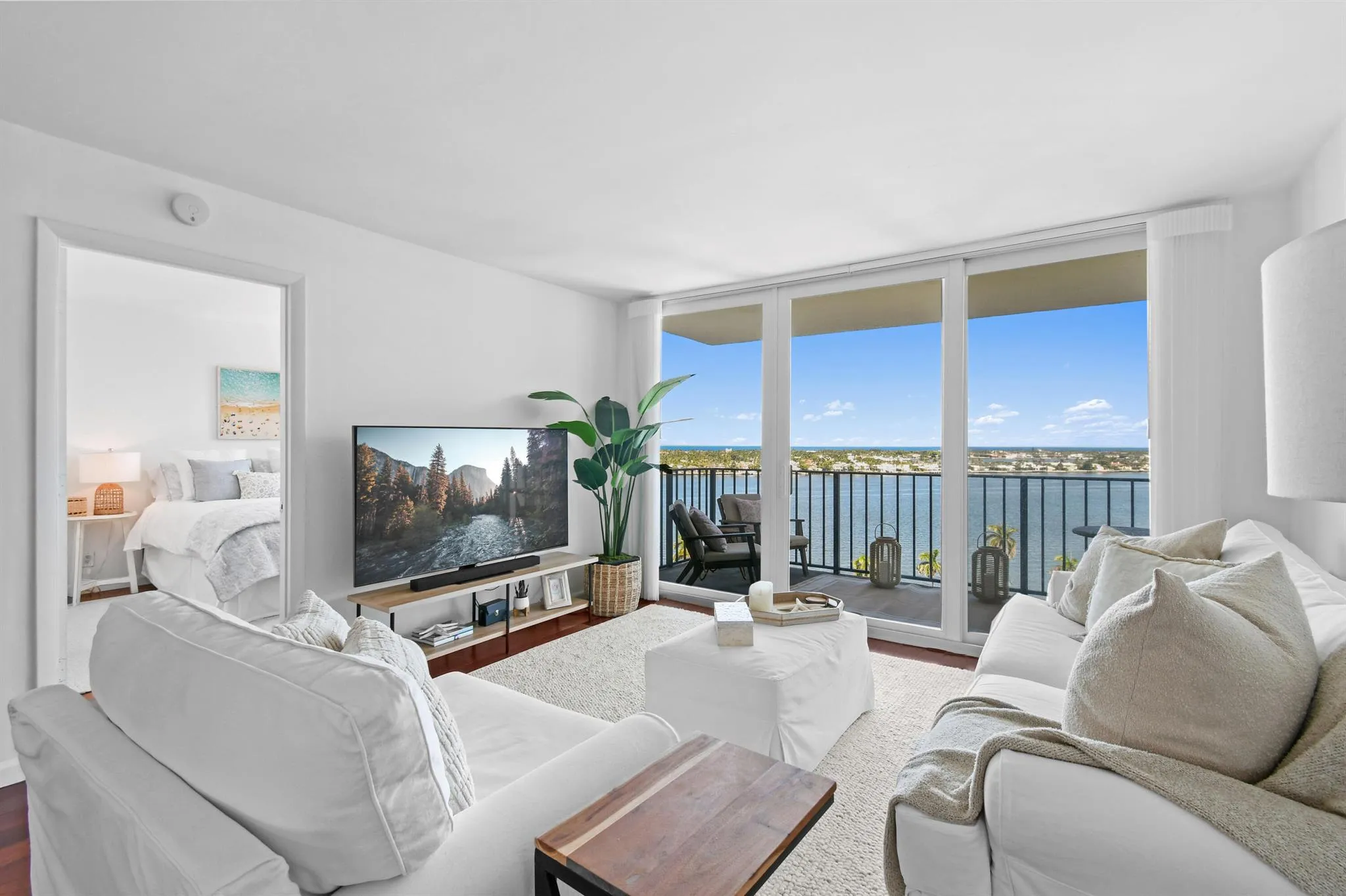 Rent this stunning, fully renovated, fully furnished, split two bedroom, open floor plan, with views of the intercostal, Palm Beach Island and the majestic Atlantic Ocean.Not pictured, more pictures soon, newly installed wood floors, wood doors and trim work. This is being installed now., ready for your first time use.Other new elements include a new kitchen, new bathrooms and closets. The unit as a large storage locker located on the same floor. Rapallo North is an upscale building, with 24-hour doorman, on-site management, a resort-style pool, fitness center, bike storage, deeded parking, and ample guest parking. Located on West Palm Beach’s ”Gold Coast”, Rapallo is minutes to The Royal Park Bridge to Palm Beach restaurants, shopping, beaches and much more.
