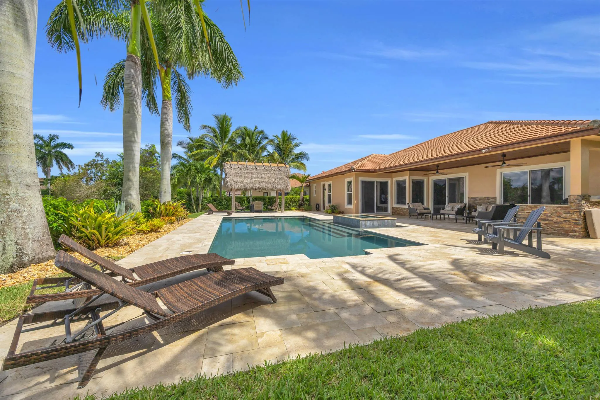 Lakefront Stockton home with stunning pool area. Gated community of Rialto w/charming walking paths and parklike areas. One LEVEL CBS w/IMPACT. 4 Beds + Den + Formal Dining, 3 full baths + 3 car garage. Built in Grill Station Poolside. Private and Quiet 1/3 Acre Lot backs to Northwest and adjacent to park. MOVE IN READY!