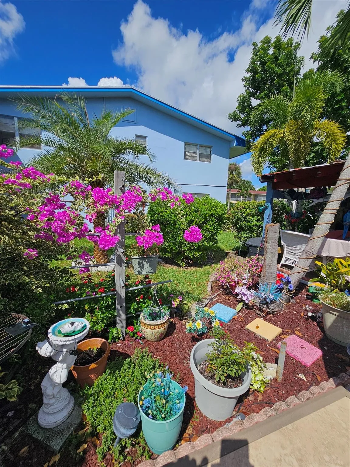 Beautiful 1 bedroom, 1.5 bath ground-floor condo with a lovely garden view, offered fully turnkey. This bright unit features tile throughout, a newer hot water heater, and central A/C—an upgrade since many units still use window systems. The primary bath offers a shower with built-in chair, and the bedroom includes two walk-in closets. The roof was recently replaced, and the building shines with a cheerful blue exterior, white picket fence, and resident sitting area. Enjoy resort-style living in Century Village, a 55+ community with shuttle buses, entertainment, tennis, boating, fitness center, and on-site theater. Conveniently located near dining, shopping, the Turnpike, I-95, CityPlace, the Intracoastal, PBI Airport, and Palm Beach.