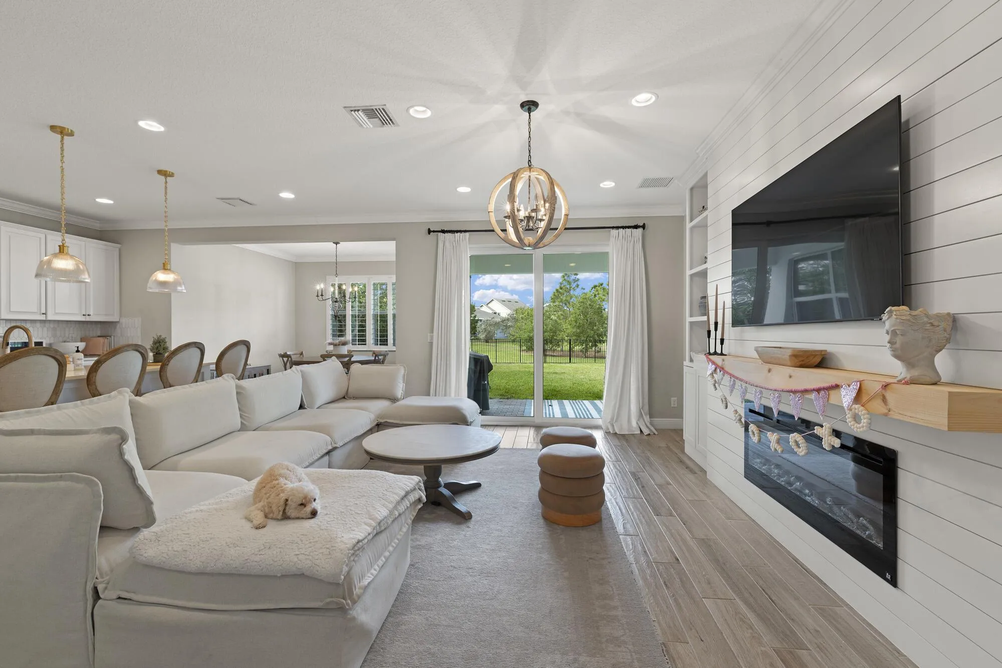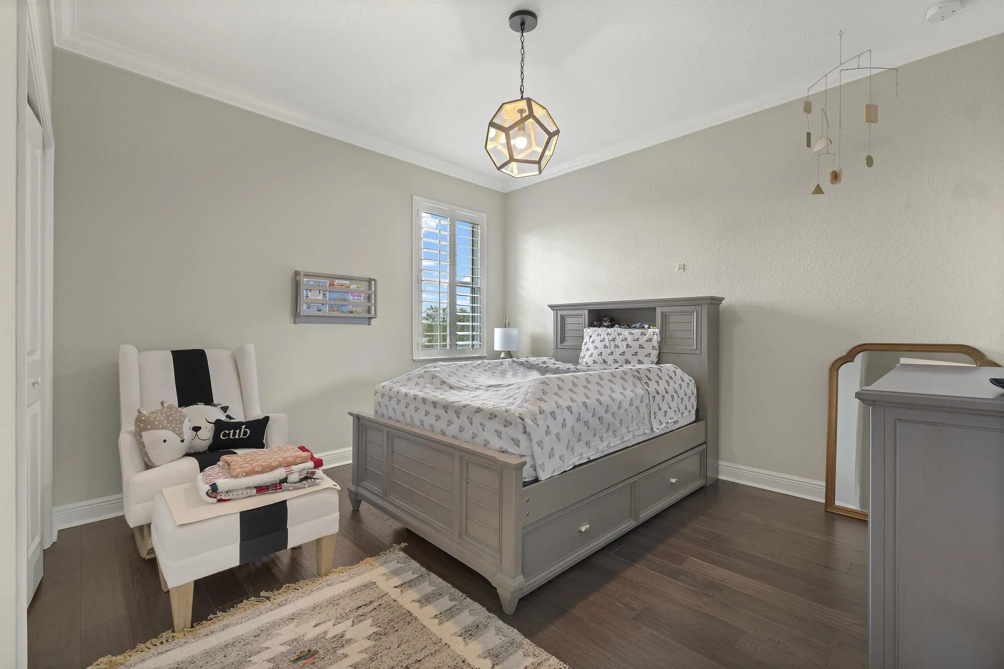 This house is straight out of a catalog! Gorgeous wood finishes adorn this 5/3 bath Arden home. You will be greeted by a cozy covered front porch and then enter a grand foyer. You will find impact windows, plantation shutters, custom lighting in the dining room, breakfast room, and over the kitchen island. Another great feature is the huge custom walk-in pantry with double doors. One bed downstairs can serve as an office or playroom. Upstairs is the master suite with 3 additional bedrooms. The garage has a tandem space where you can fit long items, like a bass boat or golf cart. The backyard is fenced and overlooks a preserve with walking trails. Arden community offers an incredible clubhouse, resort style pool, fitness center, boating/fishing lake, rec fields and so much more.