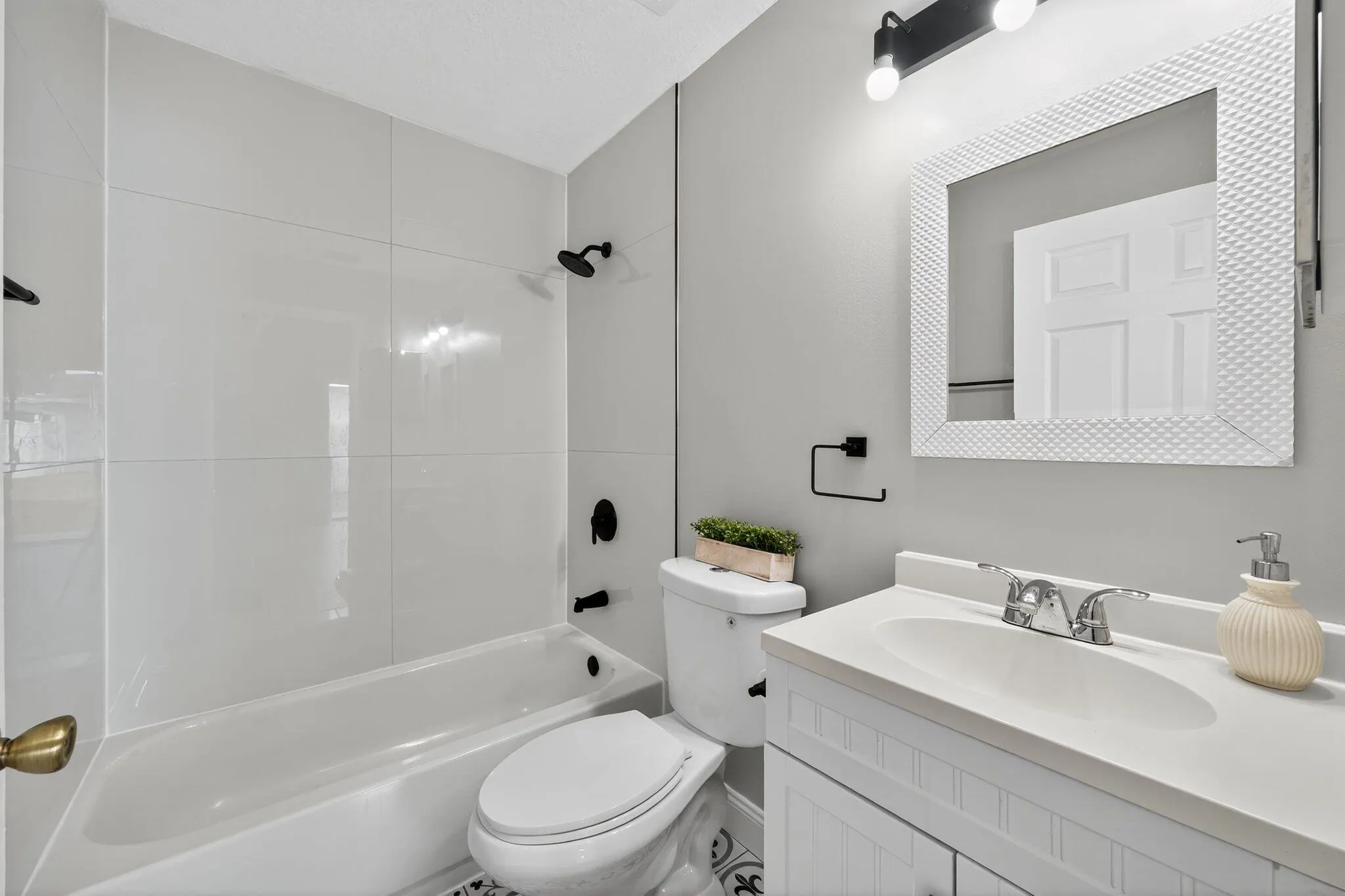 Gorgeous 3 bedroom/2 bathroom home with a 2-car garage, beautiful, updated interior, split-floor plan, and a luscious, green, blank canvas of a backyard- ready for personal touches. NO HOA. Walk inside and see a tastefully designed home with wood-look tile flooring throughout, a living room, separate dining area, and family room with sliding glass doors that open onto a slab patio. Great kitchen with granite countertops, stainless-steel appliances, a pantry, and kitchen island with barstool seating. Stunning, spacious master bedroom with a walk-in closet and incredible master bathroom with 2 vanities, a separate soaking tub and retiled stand-in shower. The hall bathroom between the 2 additional bedrooms also has a new tub and retiled shower. Roof 2018, HVAC 2019. Schedule a showing now!!!