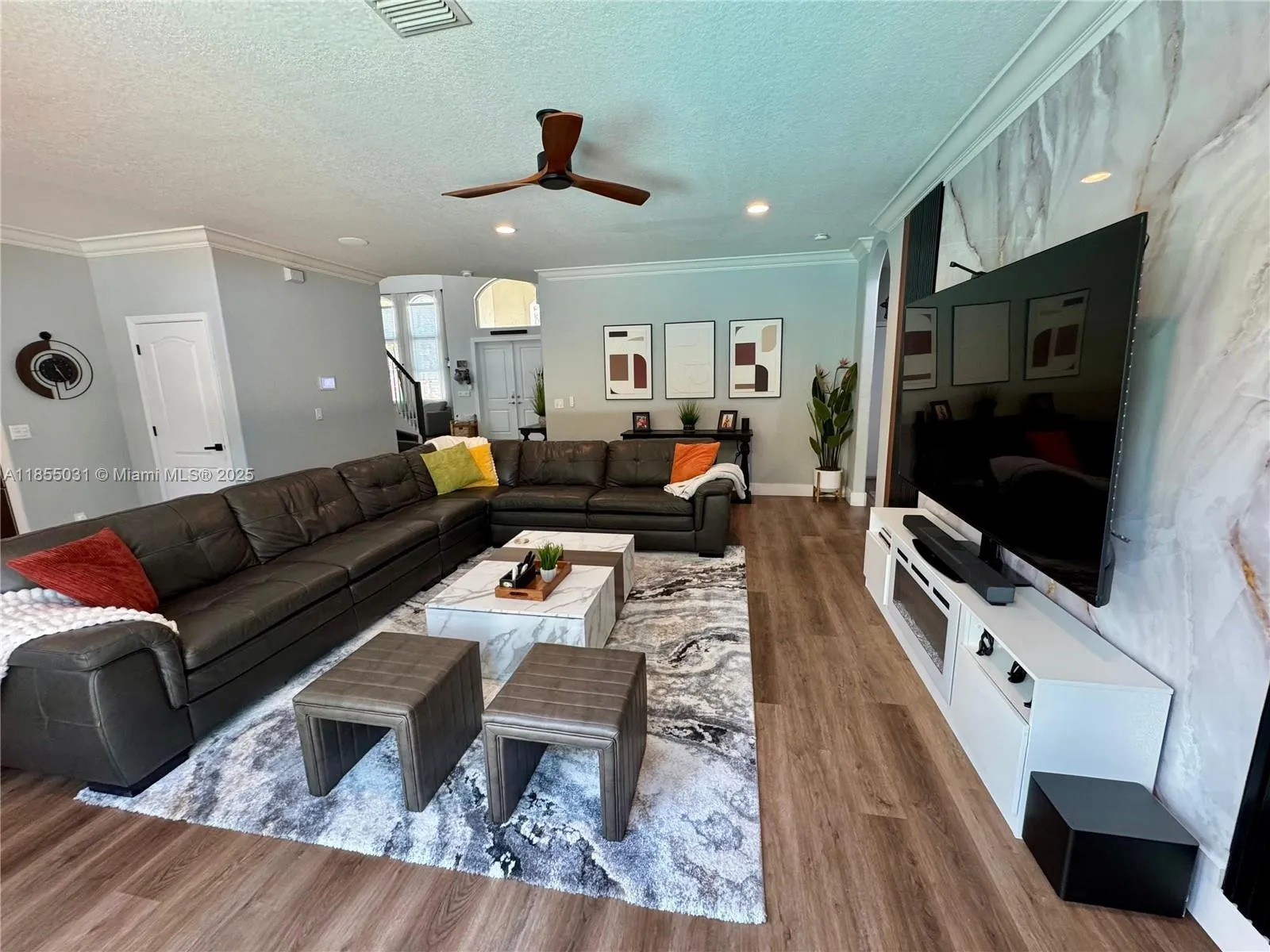 Welcome to your dream home! This beautifully remodeled 5-bedrooms 3 bathroom home, featuring an incredible pool and waterfall, is nestled in a private, beautifully landscaped tropical oasis on a spacious corner lot, in a quiet, well maintained neighborhood with low HOA. Completely remodeled bathrooms, an elegantly designed kitchen, a spacious family room and a stately two-story living room with a water softener filtration system, air purifier, and automatic A/C drain cleaning system are included. Energy-efficient high impact windows and doors. A 3-car garage with race deck flooring and air conditioning are featured. A community pool, fitness center, clubhouse, tennis courts, pickleball courts and a playground are also available. Don’t miss this opportunity.