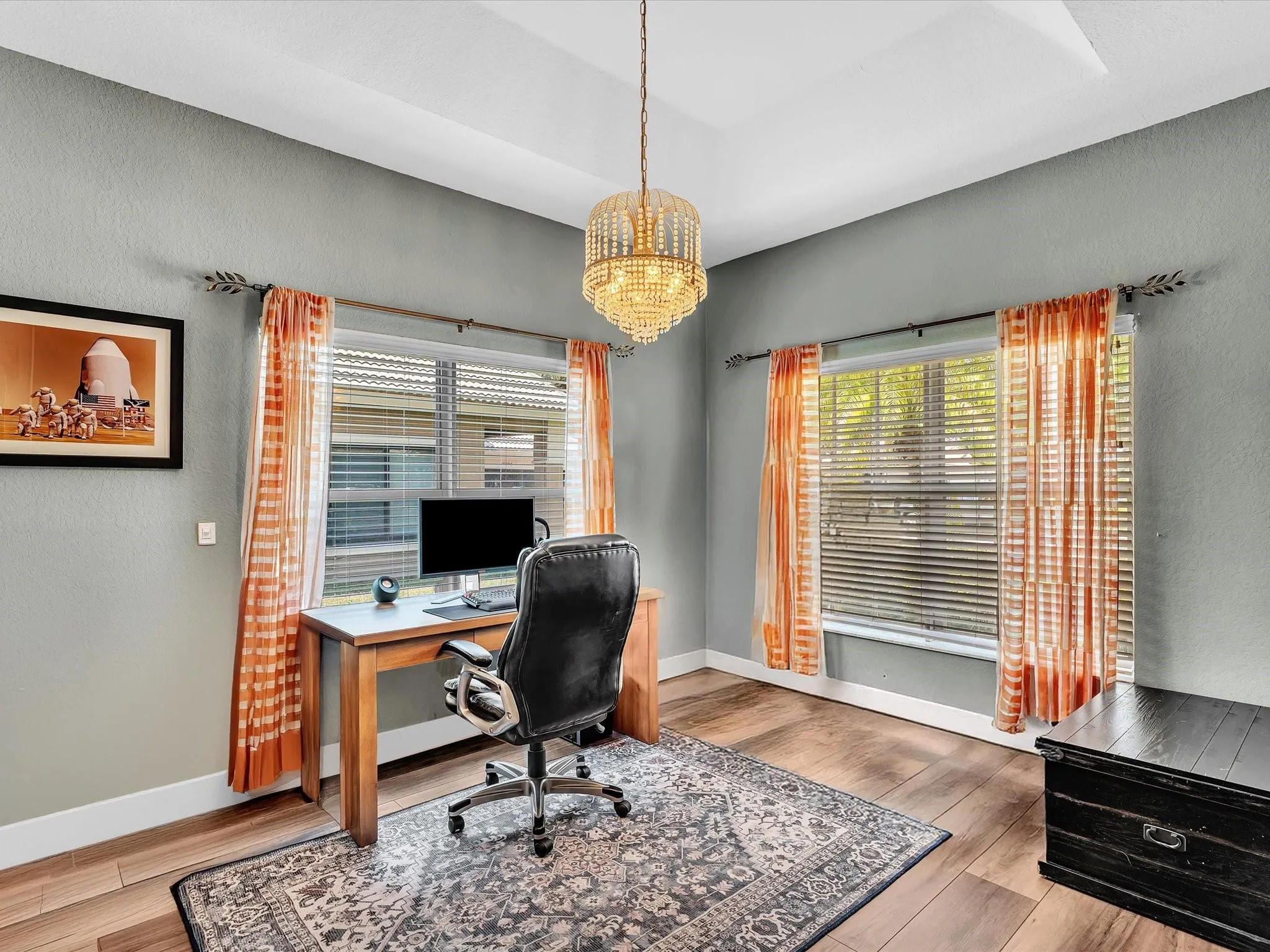 Nestled in the sought after city of Parkland, this beautifully upgraded home features elegant vaulted ceilings, long dark wood-like plank floors, stately 5-inch baseboard & recessed lighting. The kitchen offers LG stainless steel appliances, wraparound bullnose-edge granite counters, breakfast bar, & bright white wood cabinets. Master bedroom includes 2 walk-in closets with an ensuite with dual vanities, a makeup table & spa-like tub. The spacious 2-car garage features a level 2 charger for EV charging & fenced backyard with covered patio, with growing Clusia hedge. The man gated community of Parkland Isles offers resort-style amenities like clubhouse, gym, pools, playground, pickleball, & basketball court. The low HOA includes cable, speedy 500 Mbps internet & alarm service from ADT