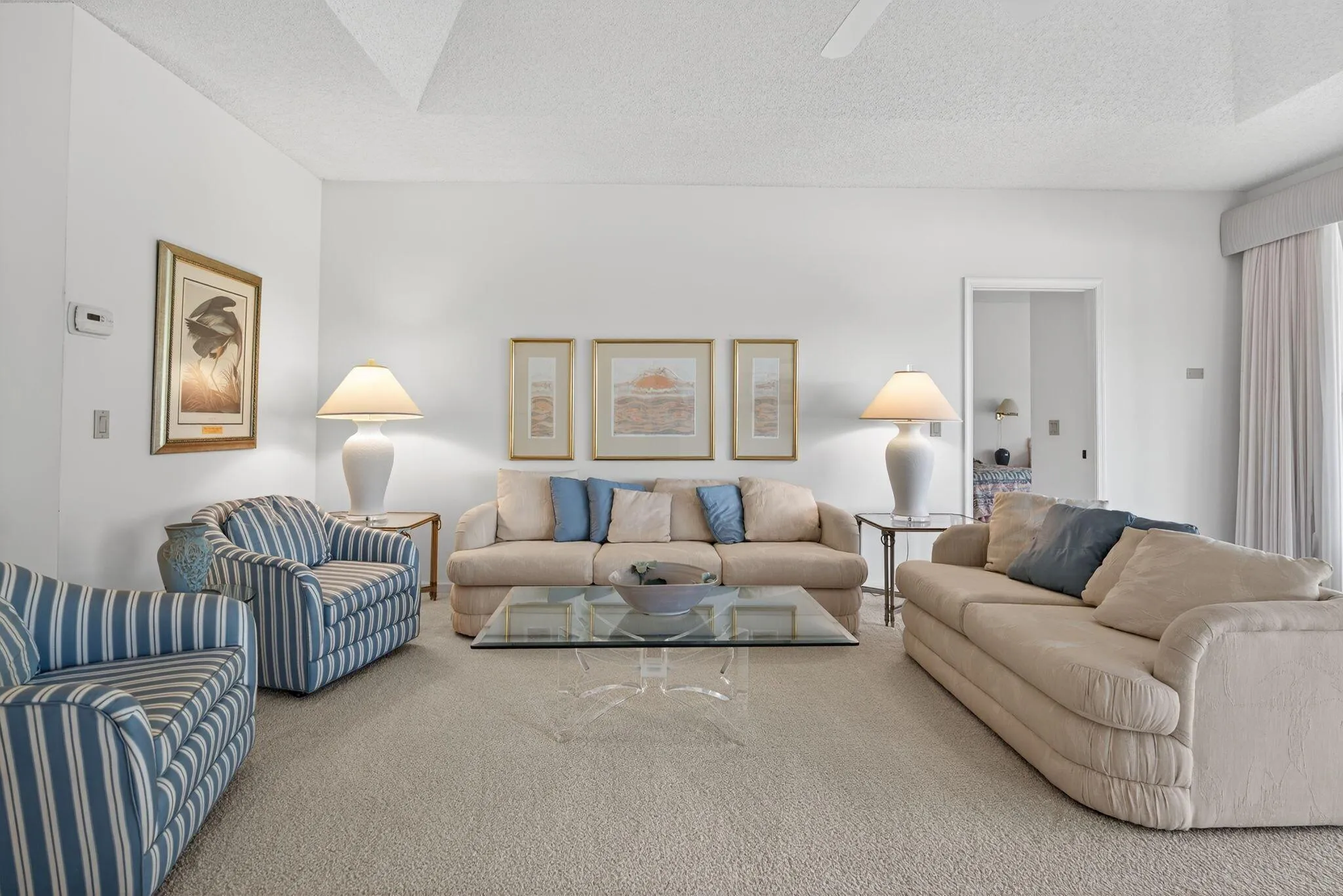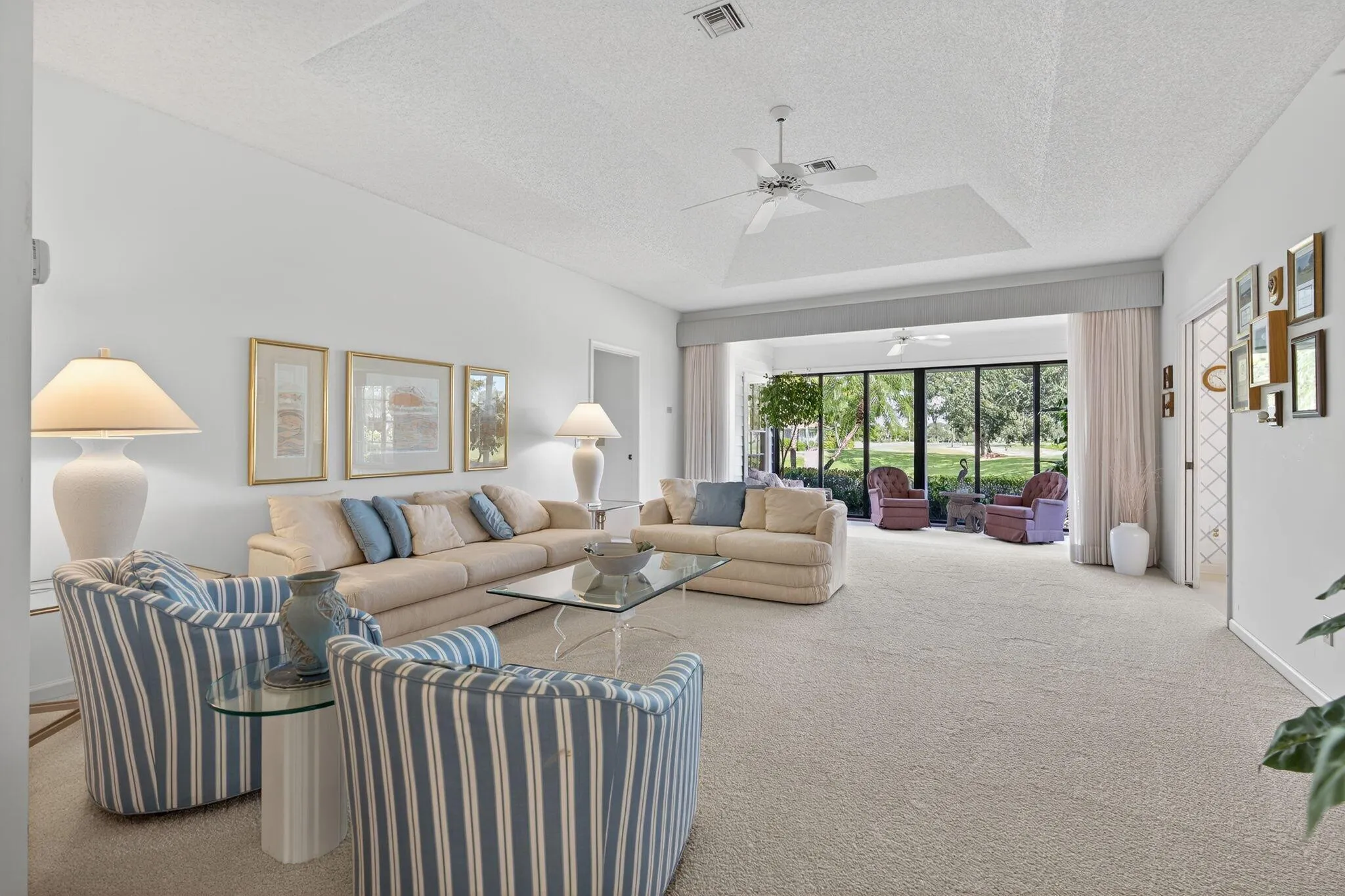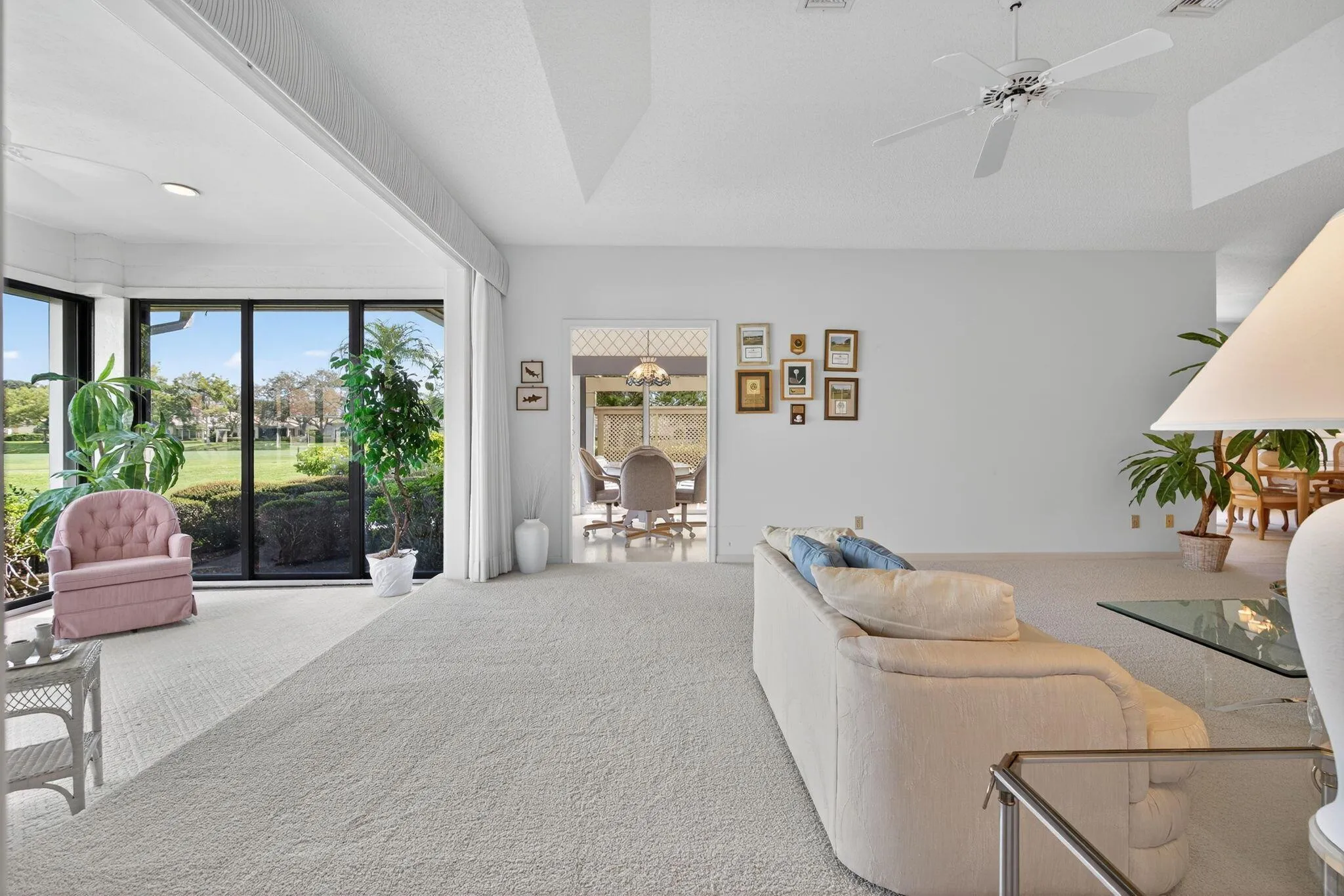 Desirable Winged Foot Cottage with Water & Golf Views! Welcome to this charming Winged Foot Cottage, offering a split-bedroom layout. The third bedroom, with two closets, is currently used as a den but can easily serve as a guest room or home office. Enjoy serene water and golf course views from the light-filled sunroom, the perfect spot to relax with a morning coffee or evening glass of wine. The kitchen opens to a casual breakfast area & patio, ideal for grilling or dining outdoors. A separate dining area provides plenty of room for entertaining. The spacious primary suite features a large walk-in closet, double sinks, soaking tub, and separate shower. Additional highlights include a spacious laundry room and a garage with a dedicated golf cart space. Lush new carpet just installed