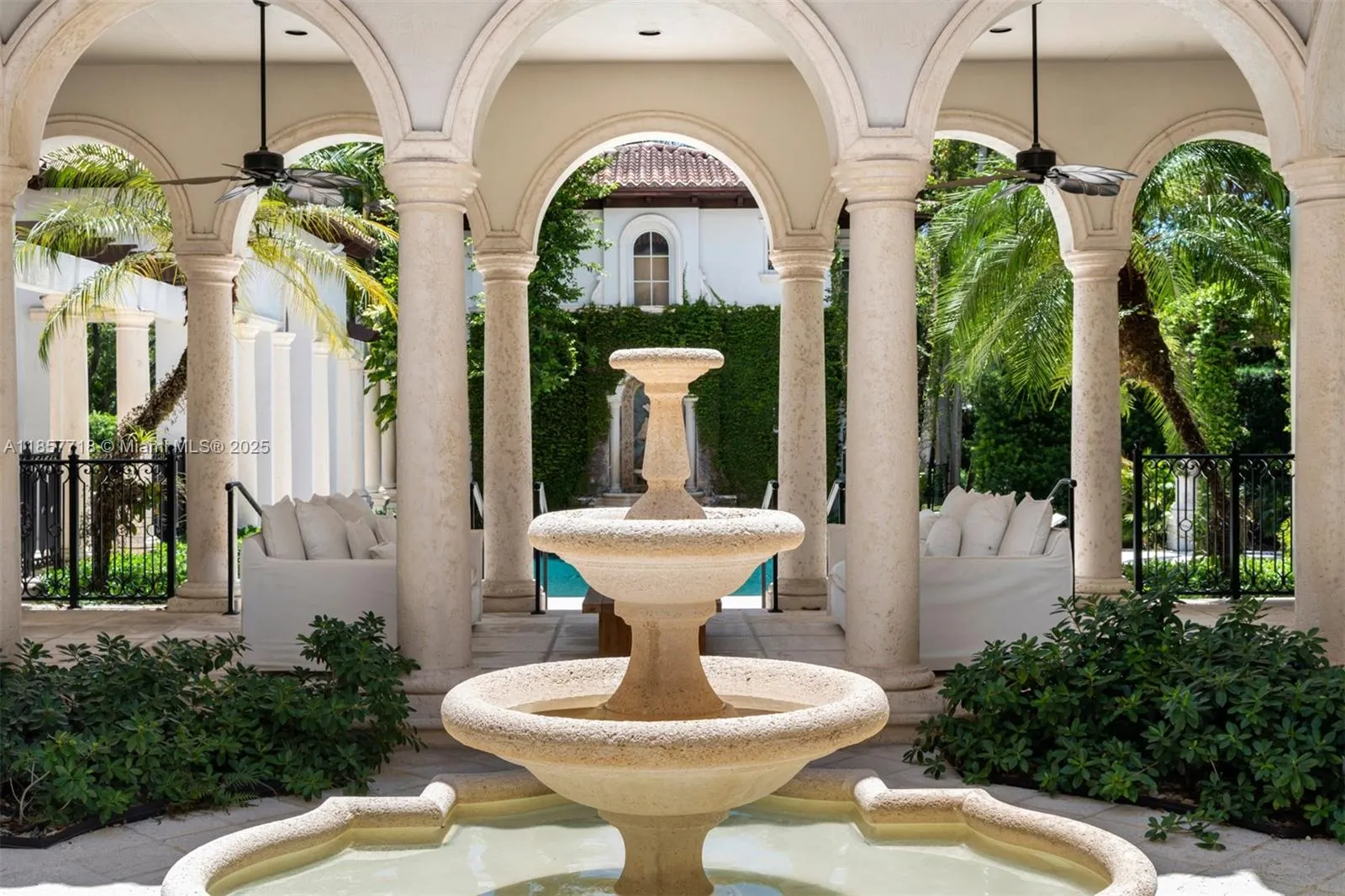 Luxury estate on esteemed Suburban Dr in Pinecrest, boasting a through-lot design. Ideal for a large family, w dual staircases that divide the foyer & formal living rm w soaring ceilings. Main level includes entertaining space, formal dining rm & open-style kitchen. Family rm is enhanced w a bar, fish tank, & workspace. Primary suite on main level enjoys its own wing, w a sitting/nursery rm. Staircases lead to distinct wings, one side 3 beds & 3 baths, and the other w 2 beds & 2 baths, featuring hardwood floors & renovated baths. Backyard is a paradise, w pool, jacuzzi, basketball court, & putting green. Additional luxuries: outdoor courtyard, water features, summer kitchen, detached guesthouse w 2 beds, living, & kitchen area, 3 car garage, & spacious motor court.
