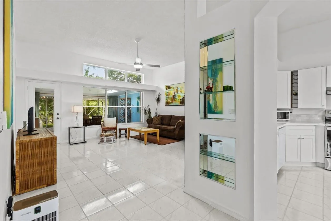 Welcome to this beautifully updated gem nestled in the secure, gated community of Foxhall. This bright and airy home on a spacious lot offers the perfect blend of comfort and convenience. Step inside to discover this newly painted home with new ceiling fans in every room, a fully renovated kitchen boasting new cabinets, countertops with stylish backsplash, faucet, dishwasher, range with hood, and a stainless steel refrigerator. Both bathrooms have been tastefully updated with his and her sinks equipped with modern fixtures on new vanities. The whirlpool tub provides a spa-like retreat. The open layout features a high living room ceiling, durable tile flooring throughout the main living areas, with cozy carpeting in the large bedrooms for added warmth.