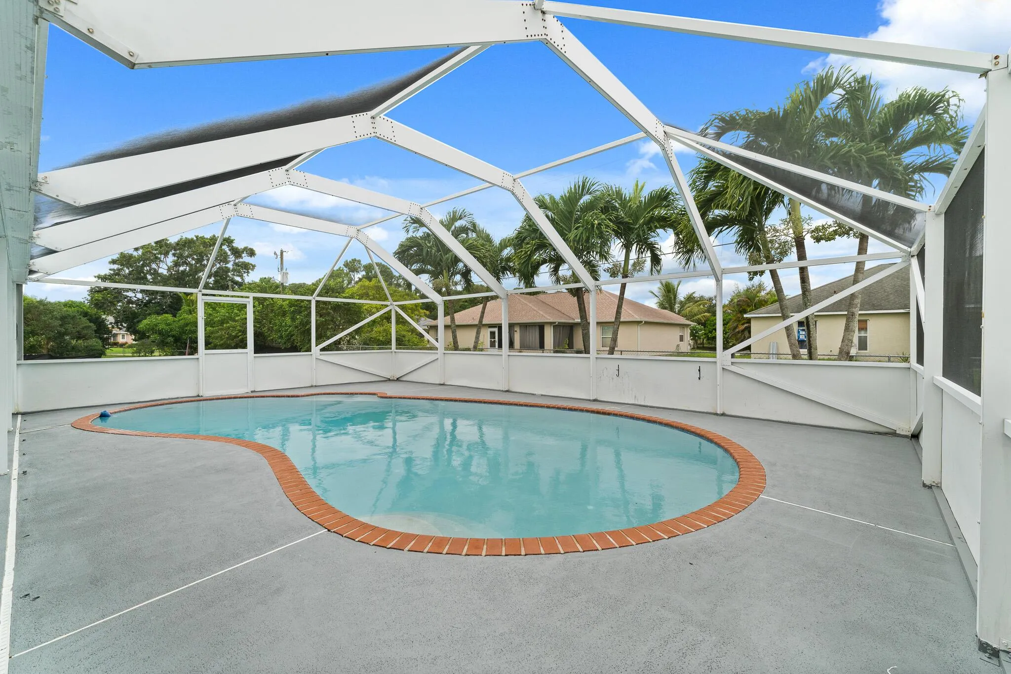 Beautifully remodeled 4BR/2BA home featuring a permitted, enclosed two-car garage converted into a spacious fourth bedroom. Upgrades include Hurricane Impact Windows, new floors, and fresh interior/exterior paint. Enjoy a large screened-in lanai and sparkling pool–perfect for Florida living. The open layout offers modern finishes throughout. Ideally located near shopping, Tradition, dining, and I-95. Move-in ready and full of comfort and convenience.