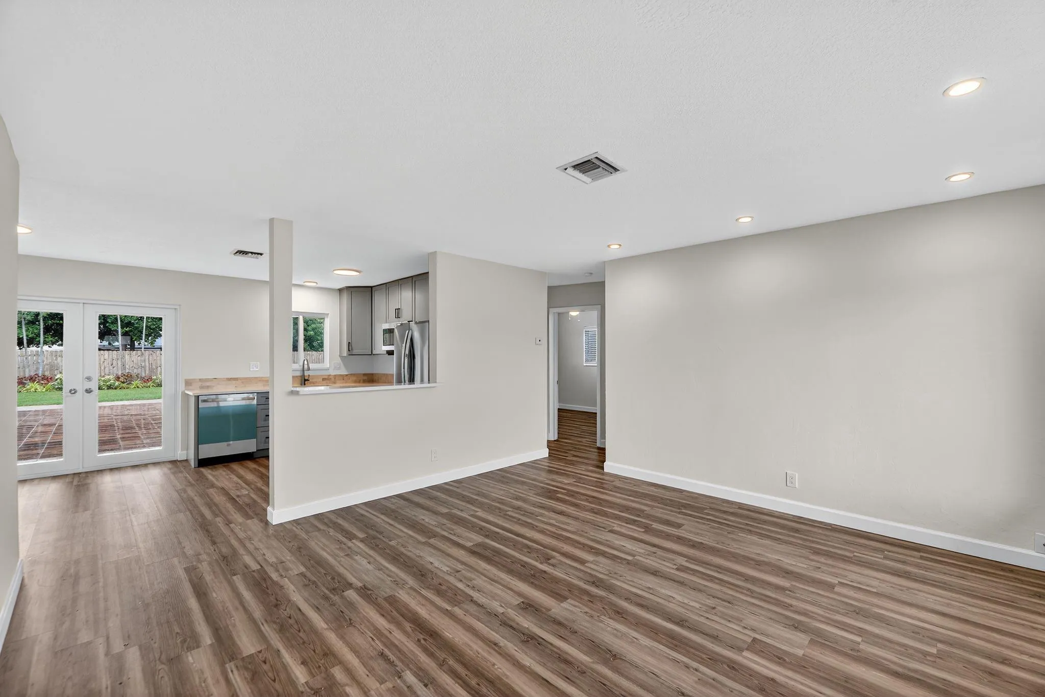 Welcome to this charming East Boca Raton gem which has been completely renovated inside and out! Exceptional Location! 2 Bedroom 1 Bath single family home, bathed in natural light & blanketed with Luxury Vinyl Plank flooring throughout! Plus you’re in an A+ School District making this home ideal for families or investors alike. Bonus: NO HOA! In the heart of Boca Raton, you’ll appreciate being within walking distance to downtown Boca & only 1.5 miles from the beach. Beautifully detailed Kitchen boasts SS appliances, stone counters, breakfast bar counter & backsplashes, double undermount sink w/hi arc faucet, contemporary cabinets w/upgraded hardware and adjacent Dining Area w/French door access to generous fenced yard offering meticulous landscapes & large paver patio.