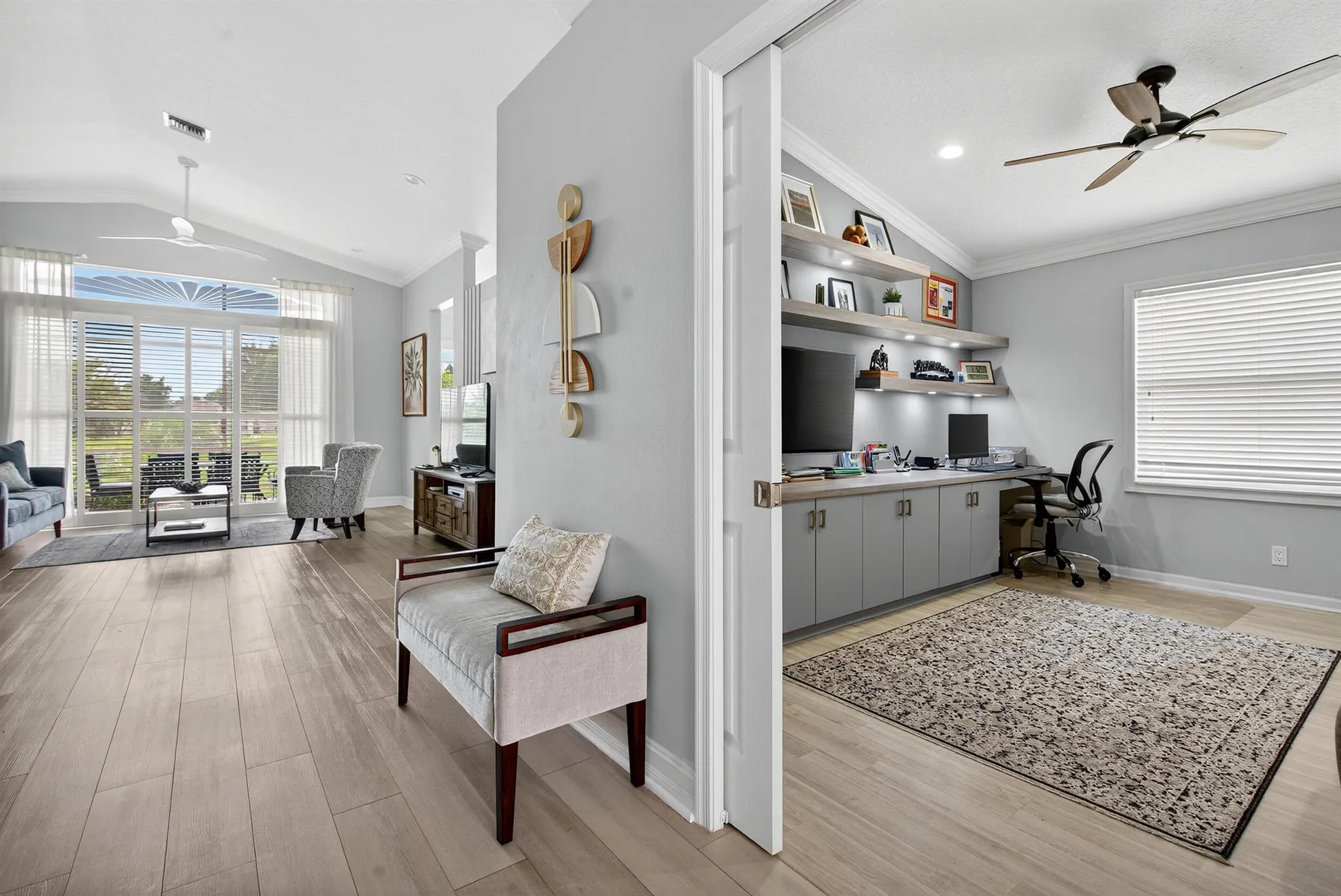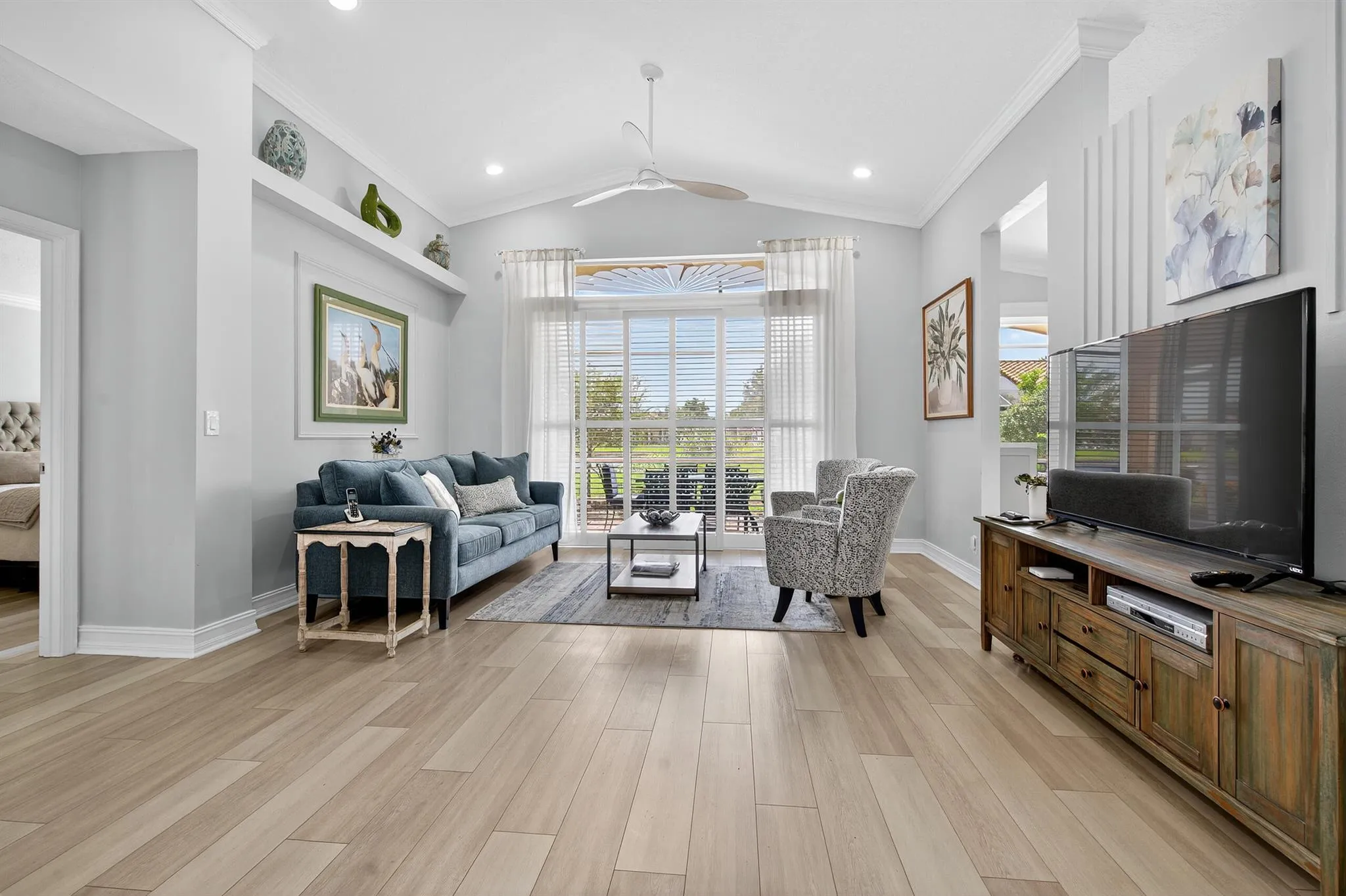 Light, bright and absolutely lovely 3/2 home with attached 2-car garage. Fully updated kitchen and bathrooms. Laminate floors. New roof. Hurricane windows. Unobstructed lake views. Spacious primary bedroom has 2 walk-in closets, ensuite bath with his and hers sinks, shower in renovated 2nd bath. Owners will pay assessments for upgraded exterior house painting in 2026 and proposed clubhouse renovation. Cascade Lakes is a 24/7 guard gated, active adult community with many amenities including indoor/outdoor pool, a fully equipped gym, sauna, library, card room, and billiard room. The active Sports Center has 6 tennis courts and 4 pickleball courts with on-sight pro.
