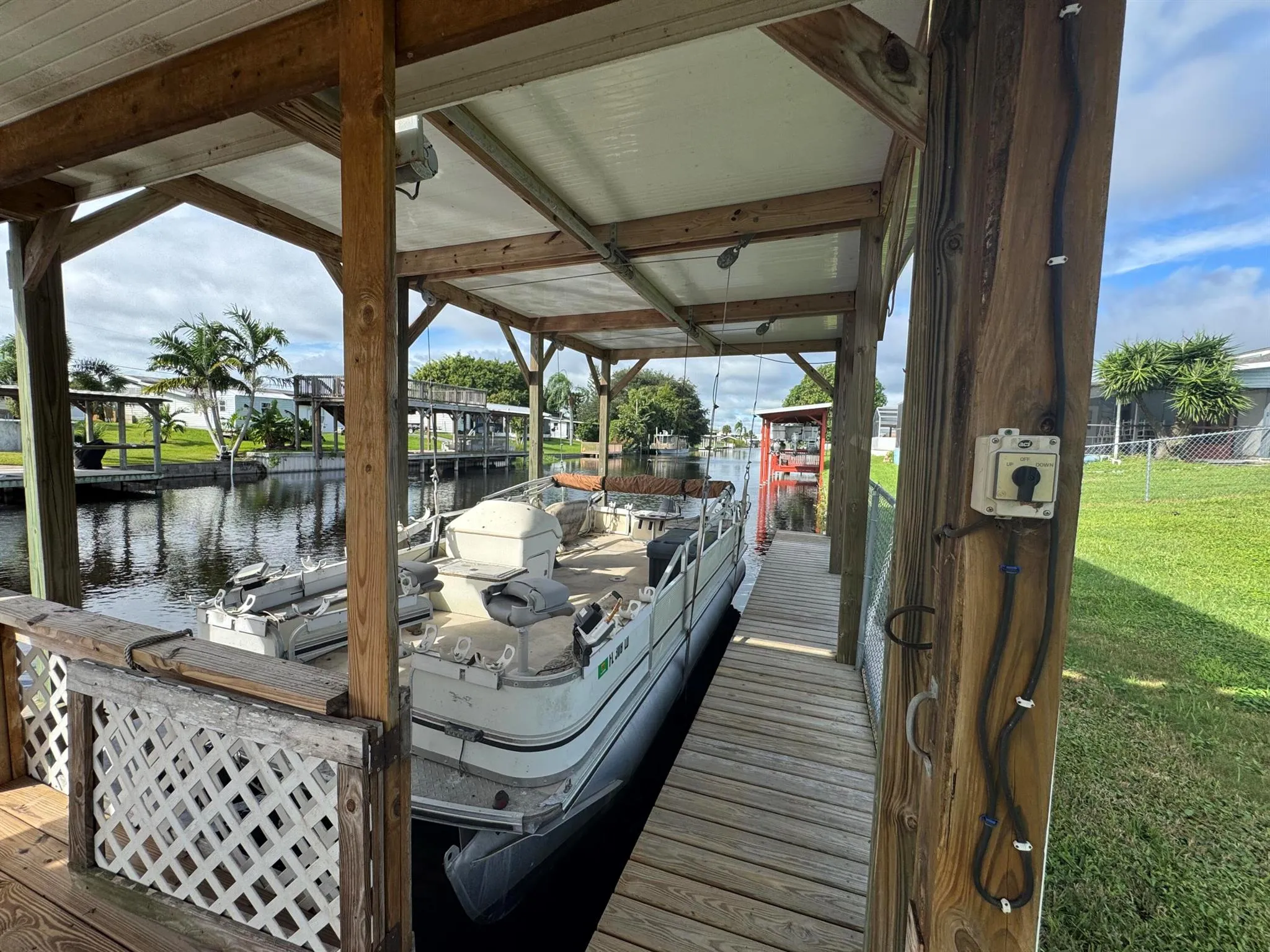 Taylor Creek Isles -Lake Access Well maintained 3-bedroom, 2-bath CBS home offering 1,672 sq. ft. of living area and a total of 2,882 sq. ft. under roof. This spacious home features a 34×12 family room overlooking the water, perfect for entertaining or relaxing with a view. Enjoy cozy evenings by the fireplace and the convenience of direct lake access from your own private dock with lift and pontoon boat included. Plenty of room for all your toys with covered parking for your boat, carport, and a concrete block shed/workshop. Located in one of Okeechobee’s most desirable waterfront communities with quick access to Lake Okeechobee. CBS construction, metal roof, accordion hurricane shutters and a well-maintained interior and exterior make this home truly move-in ready.