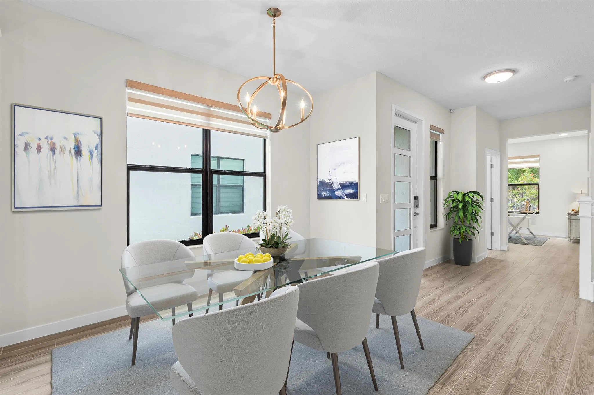 Beautiful like new townhouse with water views. Close to all, easy access to Florida Turnpike, restaurants, beach and equestrian facilities. 3 bedroom plus office/den that may be converted to a 4th Bedroom, 2.5 bathrooms, 2 car garage, large open kitchen with center island. Stainless steel appliances. Custom zebra shades with motorized slider shade. Quartz countertops in kitchen and mater bathroom counter top. Granite in second bathroom. Quiet, gated community with gated community pool. Buyer to verify all information.