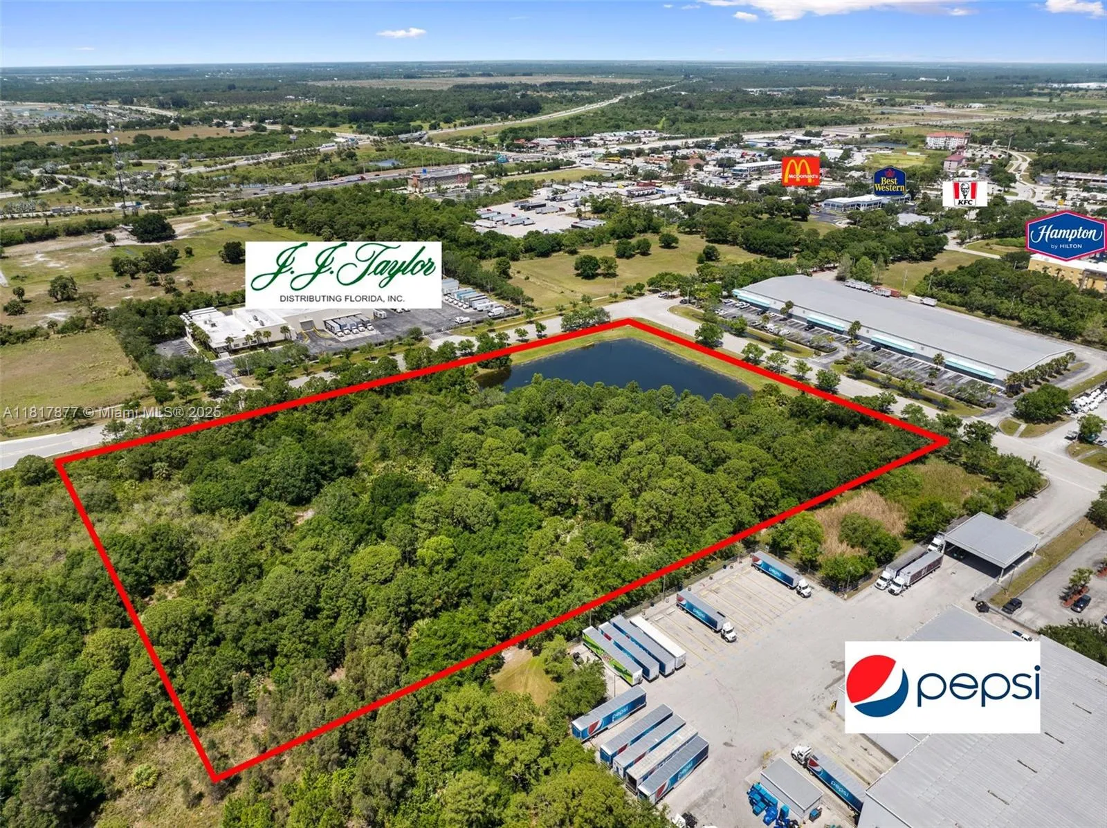 PRESTIGIOUS CROSSROADS PARK OF COMMERCE. LOT #21 IS A 5.66 +/- ACRE PLATTED LOT LOCATED AT THE FRONT ENTRANCE OF THE CROSSROADS WITH LAKE VIEWS. SITUATED BETWEEN I-95 & FL TURNPIKE WITH IMMEDIATE ACCESS TO BOTH. THIS SITE IS WITHIN A TWO-HOUR DRIVE TO OVER 75% OF THE STATE’S POPULATION, MAKING IT A SUPERIOR LOCATION FOR DISTRIBUTION. CLOSE PROXIMITY TO WALMART REGIONAL DISTRIBUTION HUB & NEW “RECENTLY OPENED” AMAZON FACILITY. TENANTS INCLUDE: PEPSI COLA, RYDER TRUCK, J.J. TAYLOR DISTRIBUTION, HULLETT ENVIRONMENTAL, NUCO2, NEXT PLUMBING, ABC SUPPLY CO., HAMPTON INN, COMFORT INN & MANY MORE.OVER 100′ OF ROAD SYSTEM (2 LANES IN-2 LANES OUT) TO ACCOMIDATE DOUBBLE TANDEM TRACTOR TRAILERS. DESIGNATED A FOREIGN TRADE ZONE. PERFECT SITE FOR OUTSIDE STORAGE LOCATION. READY FOR DEVELOPMENT