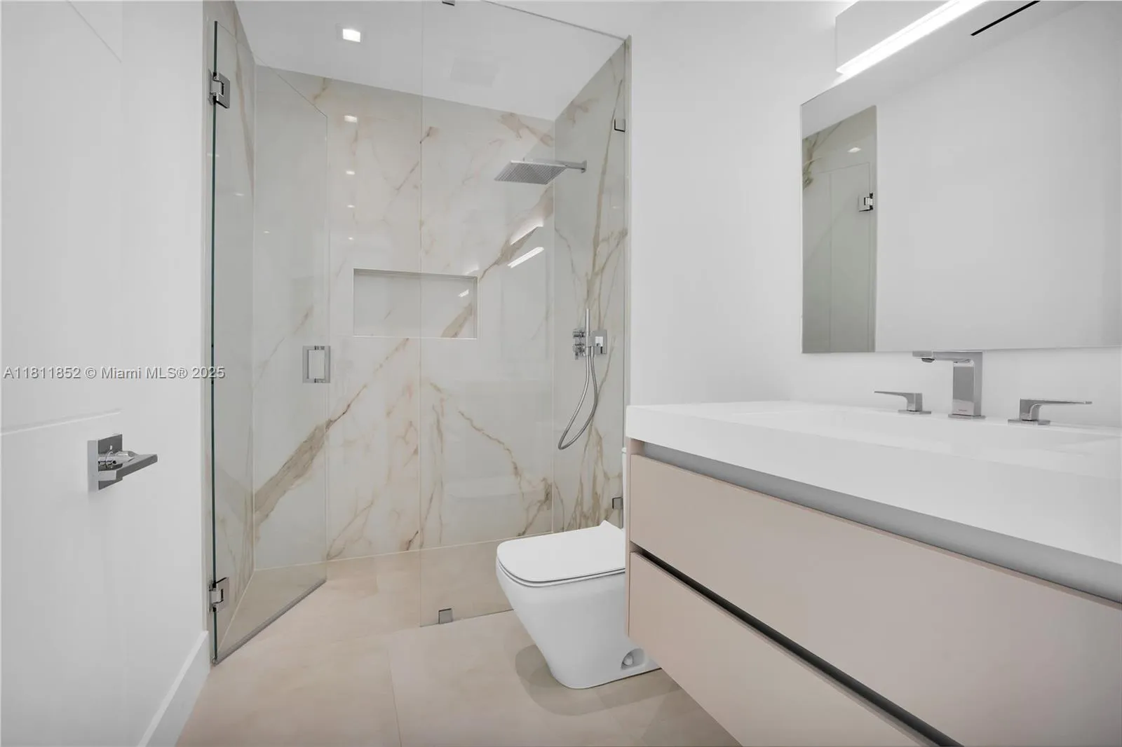 Exquisite 2022 built home is a 4,062 sq ft designer tropical retreat, nestled on prestigious Pine Tree Drive in Miami Beach. A short distance to beaches, world-class dining, and elite shopping. This resort style 5 beds, 5.5 baths residence offers a private pool, heated spa, and rooftop terrace. Spacious open layout with dramatic 10–22 ft ceilings, sleek Italian flooring, linear air diffusers, and impact-rated glass windows and doors. Gourmet Italkraft kitchen features Consentino countertops, Sub-Zero appliances, and premium gas cooktop. Outdoor kitchen has gas BBQ, shower, and lush landscaping. Floating oak staircase leads to expansive bedrooms with en-suite baths. This home features custom vanities and premium Hansgrohe-Axor fixtures. A sophisticated sanctuary in the heart of Miami Beach.