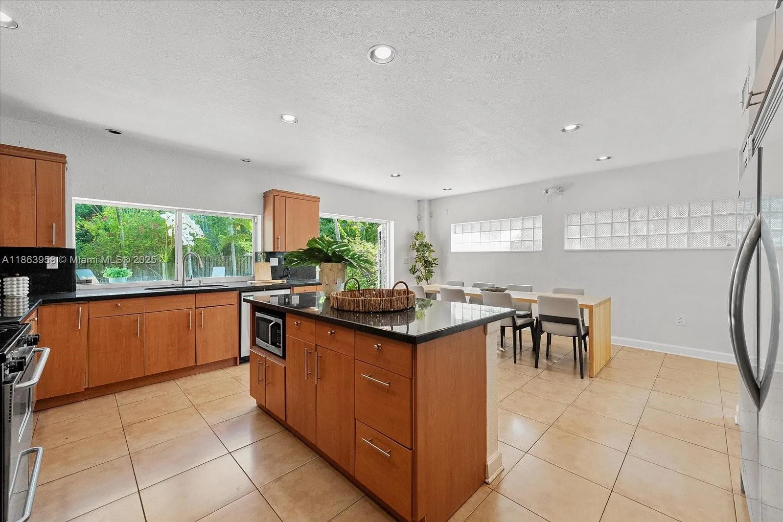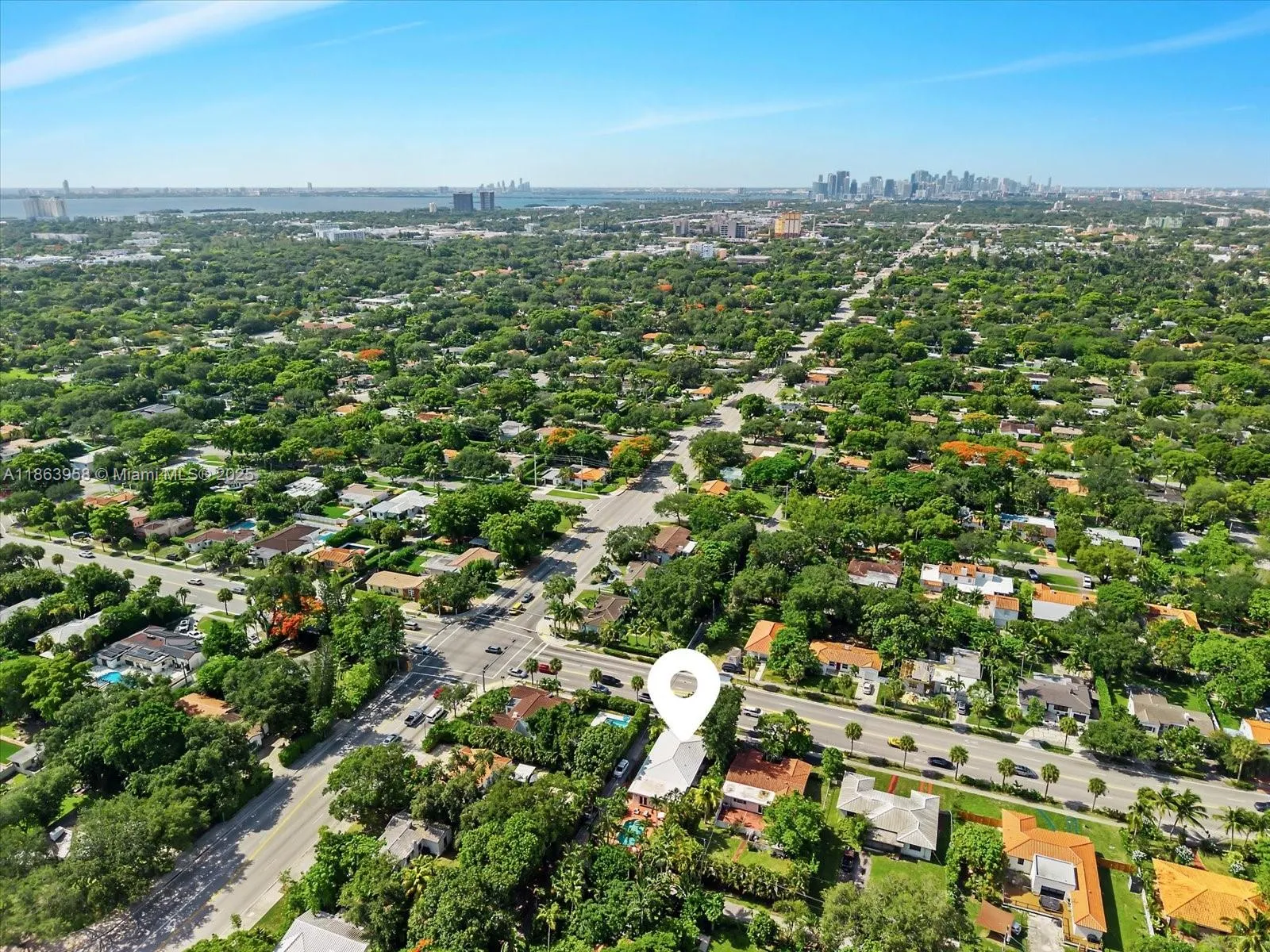 Welcome to Casa Palmera, a tropical hideaway in prime Miami Shores. This bright and airy 4-bed, 3-bath home offers laid-back luxury with a lush backyard escape, framed by swaying palms and vibrant landscaping. A sun-drenched corridor guides you through the home, connecting light-filled interiors with the outdoors. The oversized kitchen is the heart of the home, featuring a generous snack counter and a large dining area that opens directly to the patio, perfect for effortless indoor-outdoor entertaining. Spend sunny afternoons by the pool in complete privacy and tranquility. Additional highlights: cabana bathroom, impact doors, laundry room, and alley access with a circular driveway. Centrally located and minutes from top-rated school making it perfect for families.