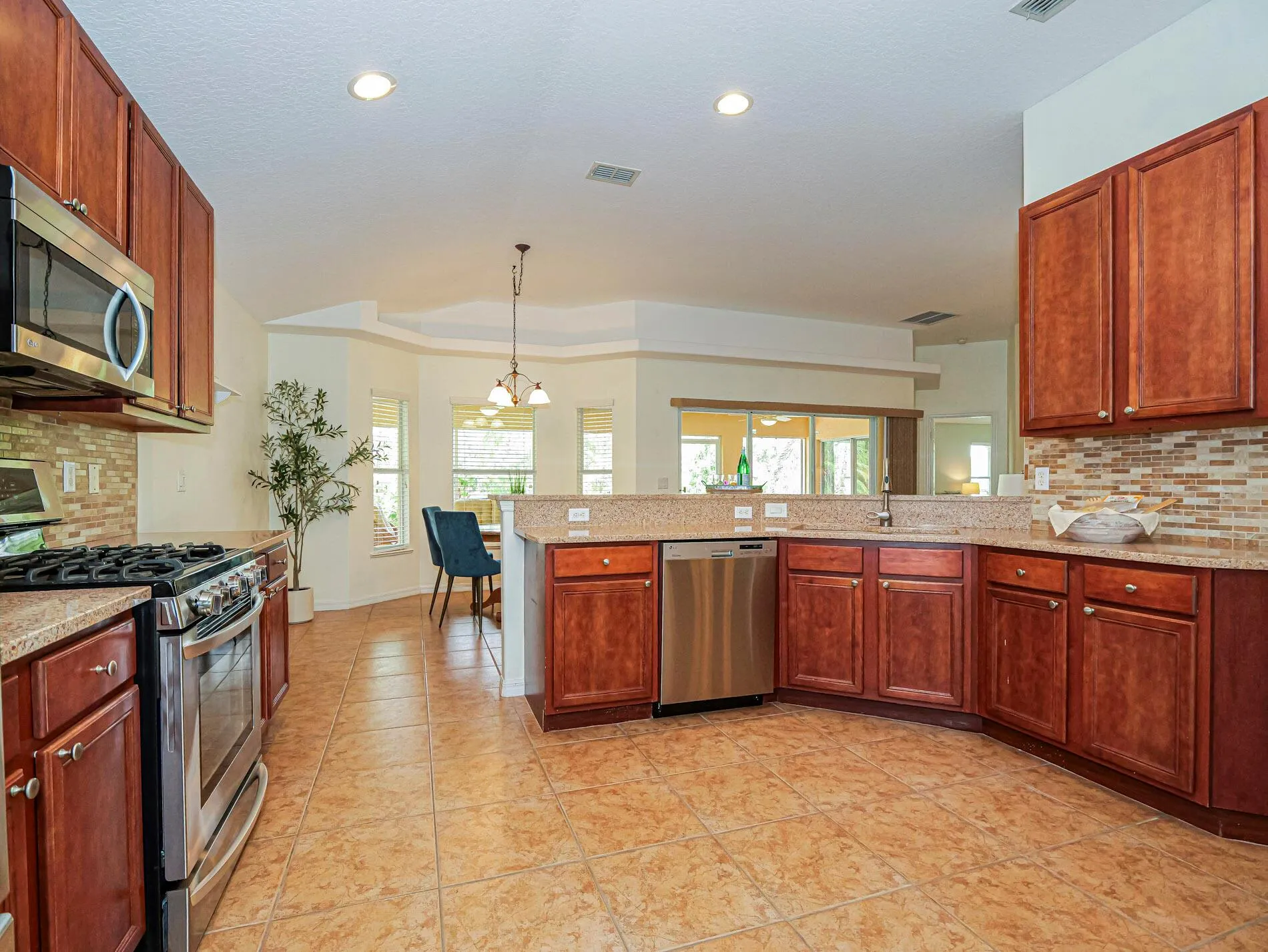 Don’t miss this beautiful 4-bedroom, 2-bath home with a 2023 roof and open floor plan perfect for entertaining. The spacious kitchen features natural gas cooking and ample storage. After a chef style meal, relax on the oversized screened lanai overlooking peaceful green space. Enjoy cool breezes as the retractable sliding doors creation indoor-outdoor living space. Located in the gated community of Citrus Springs Village where the community offers resort style living at its finest with a clubhouse, pool, tennis, pickleball and fitness center. Low HOA! All room sizes approximate.