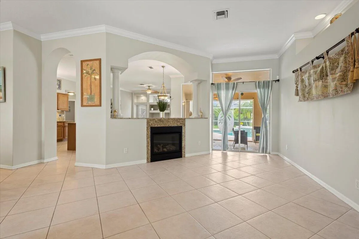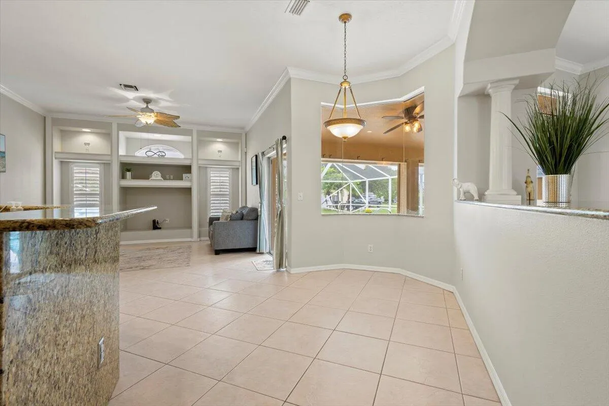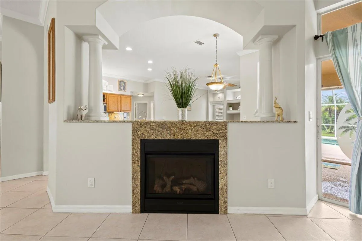 Welcome home to your private Florida retreat–where poolside living and spa-like relaxation come standard. This beautifully upgraded home features a sparkling saltwater heated pool and jacuzzi, creating the perfect setting for unwinding, entertaining, or enjoying sunny days year-round. Recent improvements include a brand-new 2025 roof, fresh exterior paint, accordion hurricane shutters, and a whole-house water filtration system for added comfort and peace of mind.Inside, elegant touches like plantation shutters, crown molding, and a cozy fireplace set a warm, inviting tone. The spacious floor plan offers a formal dining room, separate living and family rooms, and a chef-inspired kitchen with gas stove, double wall oven, and breakfast nook–ideal for everyday living or hosting guests.