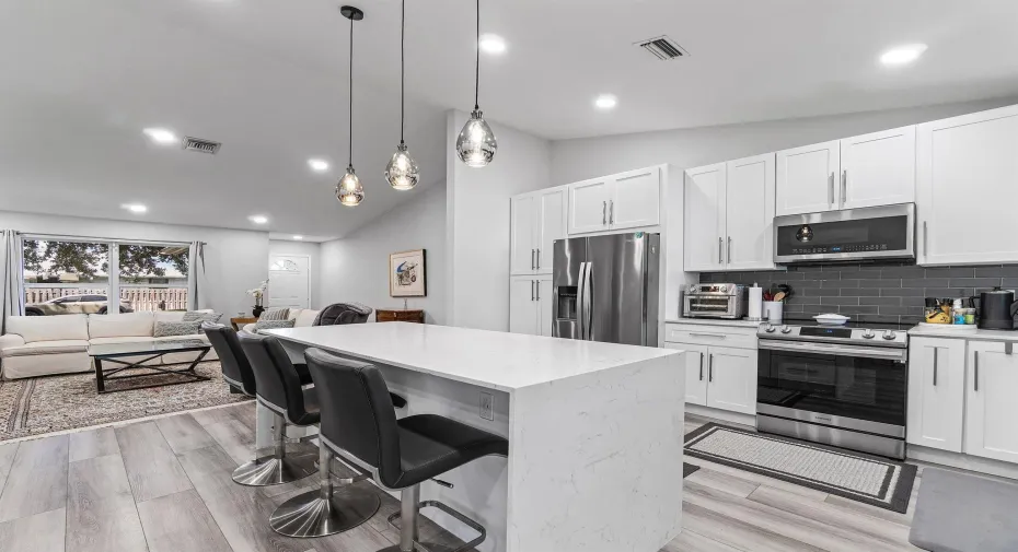 BEAUTIFULLY RENOVATED CBS HOME IN NON-HOA SIDEWALK LINED NEIGHBORHOOD! 2025 HVAC, 2025 Water Heater & More! You don’t want to miss this one! Renovated from nearly top to bottom-this home has a newly renovated kitchen with waterfall quarts countertops on an oversized island perfectly fit for entertaining. The living room boasts vaulted ceilings and abundant natural light. A large primary suite offers a beautifully renovated en suite bathroom, walk-in closet as well as additional wardrobe storage. Across the home you will find two well appointed bedrooms and another newly renovated bathroom. Off the back of the home you will find a screened in lanai and a backyard with room for a pool.