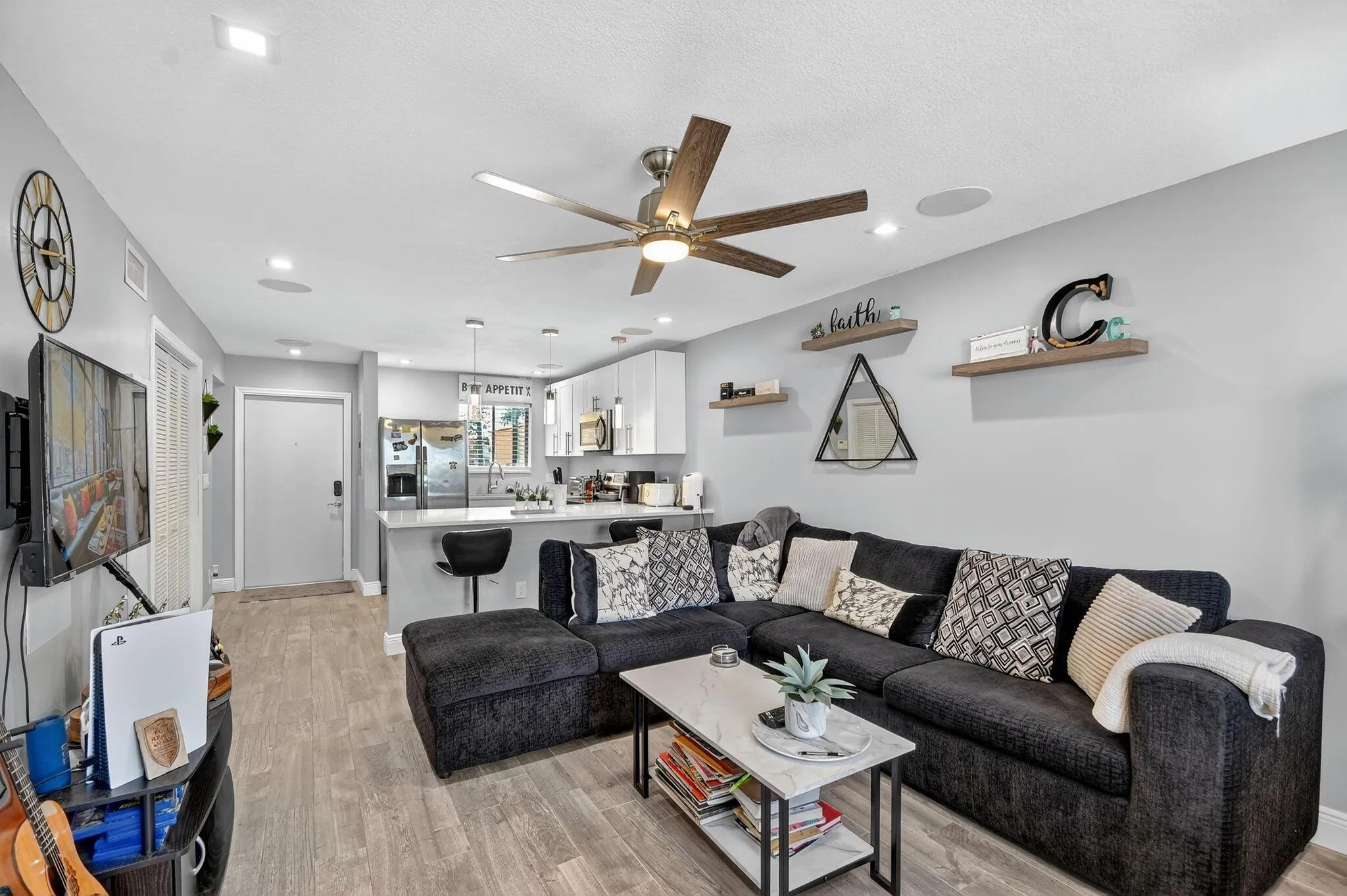 This bright and spacious 1-bedroom, 1-bath corner unit offers modern upgrades throughout and the convenience of first-floor living. The home features elegant wood-look tile flooring, LED high-hat lighting, and an updated kitchen and bathroom with contemporary finishes. The tankless water heater provides efficiency and peace of mind. Enjoy plenty of natural light from additional corner windows and a comfortable layout perfect for everyday living. Conveniently located near shopping, dining, and major highways, this move-in-ready condo is the perfect place to call home!
