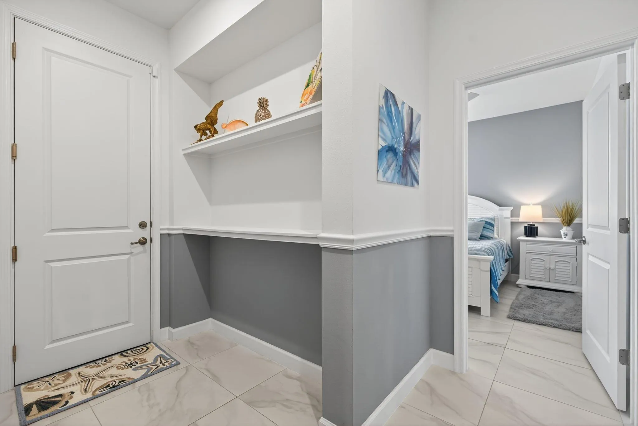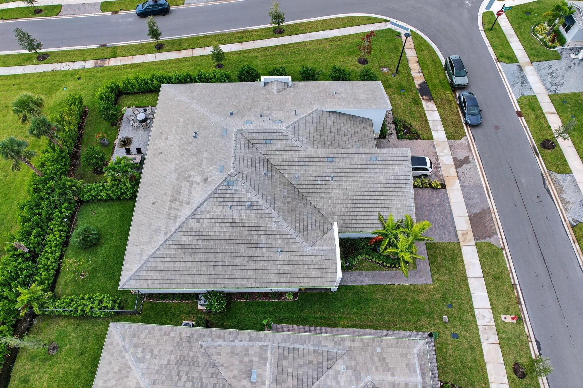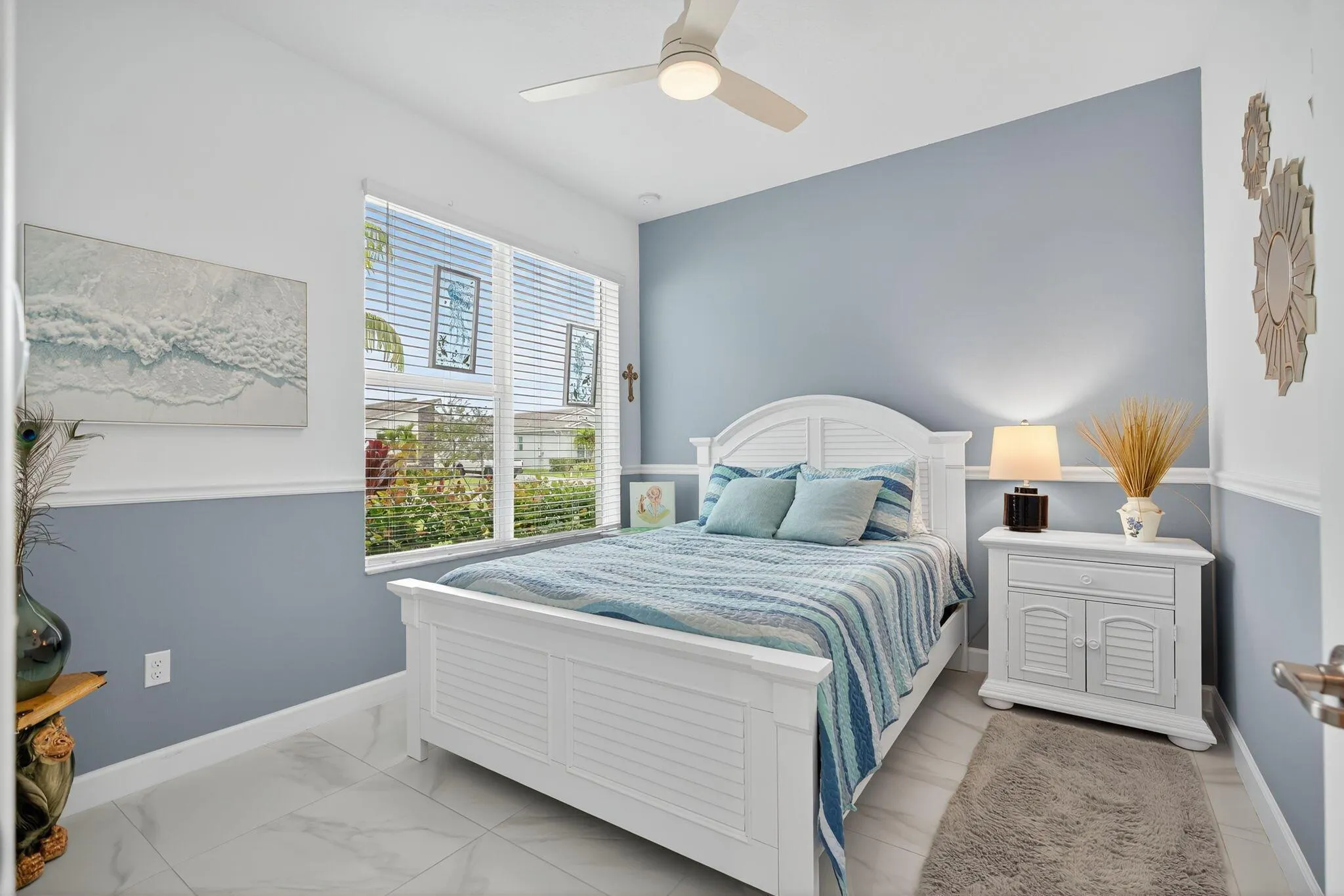 Great opportunity.Located in a secluded part of community.Not backing up to a shopping center or main road. This furnished contemporary Felicity model villa is a 2/2 plus a flex room with a 2 car garage w over $18,000. in additional upgrades after closing. Light & bright with open concept. Kitchen offers 42” soft close cabinets w brand new electric stove & microwave. Gas hook up there if needed. Walk in pantry & large island. Quartz countertops w backsplash. Other upgrades includes include all tile throughout home, No carpet. Laundry room has high end front loading washer & dryer plus wet sink & cabinet & accessible from primary bedroom walk in closet or hallway. All hurricane impact windows & doors. Covered screened patio overlooks professionally landscaped fenced i