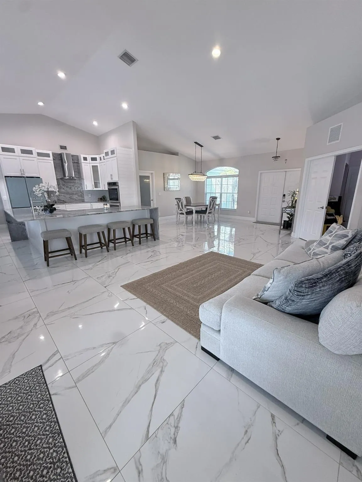 Spacious and stylish CBS pool home on a corner, fully fenced lot with NO HOA, just 5 minutes from I-95 and Tradition. Features include multiple living areas–living room, family room, and dining room–ideal for both daily living and entertaining. The kitchen offers stainless steel appliances and an open flow to the living spaces. The master suite features dual sinks, a soaking tub, and a separate shower. The 4th bedroom with closet can also serve as a den or home office. French doors open to a large, covered patio and screened lanai overlooking the pool, perfect for outdoor enjoyment. Prime location near Tradition’s shopping, dining, and amenities.